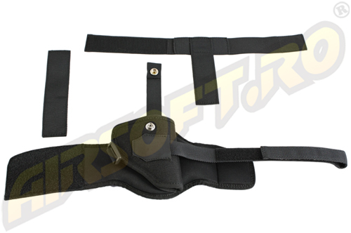 Fondina in cordura per SMITH & WESSON. La fondina ha anche 3 nastri per fissazione. Questi sono dotati di velcro e possono essere adattati facilmente, secondo la larghezza e lunghezza della tibia del utilizzatore.