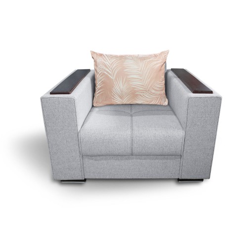 Fotoliul Solis este un fotoliu modern conceput pentru un stil de viata activ. Fotoliul Solis are saltea cu plasa de arcuri (tip Relaxa) si burete de densitate mare pentru o rezistenta sporita in timp. Atat fotoliul cat si perna sunt tapitate cu stofa. Fotoliul Solis are o perna pufoasa foarte utila pentru o sedere cat mai confortabila pe fotoliu, dar si pentru o pata de culoare. Cusaturile de pe sezutul fotoliului dau o eleganta aparte produsului. Pe bratele fotoliului se afla ornamente din MDF wenge care pot fi folosite ca suport pentru pahare. Fotoliul Solis este foarte usor de montat avand elemente de cuplare rapide. Dimensiuni fotoliu Solis: Lungime: 1080 mm Adancime: 860 mm Inaltime: 730 mm