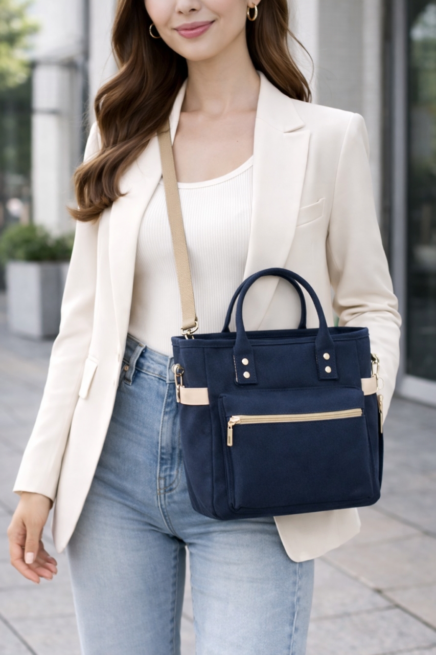1 compartiment principal; 1 buzunar exterior fata cu fermoar; 1 buzunar exterior spate cu fermoar; 2 buzunare laterale fara fermoar; 1 bareta ajustabila si detasabila; material: poliester impermeabil; accesorii de culoare aurie; sistem inchidere: fermoar; dimensiuni: 26 x 14 x 27 cm; Important : Culoarea produsului poate varia ușor datorită luminozității monitorului. Din cauza varietății instrumentelor de măsură, pot exista ușoare erori de cm.