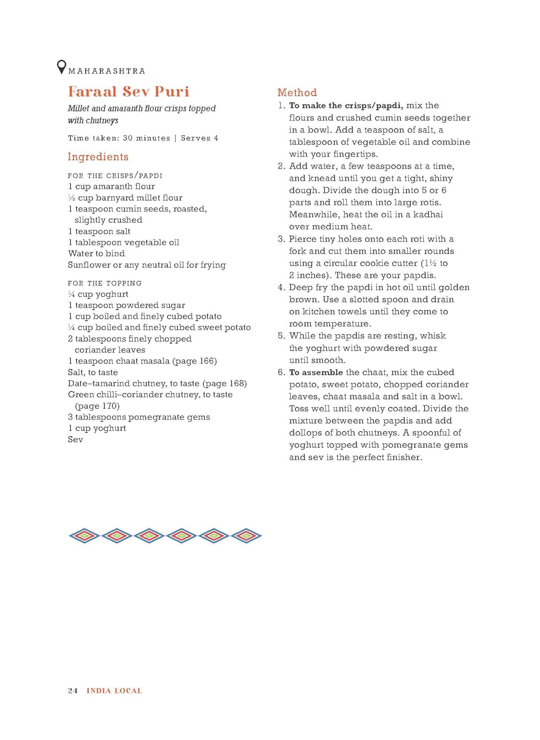India Local is a cross-country culinary adventure complemented by mouth-watering photographs – an invaluable source for chefs and home cooks who wish to recreate the flavours Indian streets in their own kitchens.Texture, colour, flavour – the essence of India itself, intertwine and explode in this stunning cookbook. Celebrating the patent versatility and abundance of Indian cuisine, India Local focuses on India’s street foods and chaats. It tells the story of a nation through its street offerings, from the bustling lanes of old Delhi and the alleyways of Lucknow to the swarming bylanes of Mumbai and Ahmedabad. The author takes you on a cross-country culinary adventure through the vibrant gullies of Surat to the hilly thoroughfares of Darjeeling, exploring along the way the kitchens-on-wheels from Jaipur to Gangtok all the way down to the hectic curbsides of Chennai. Ved’s glamorous yet approachable recipes meet Karam Puri’s street-style photography, and together they guide you through the best chaats and street food in India. Pick from usuals like pani puri and vada pav, to special snacks by India’s most innovative minds: hello, tawa paneer chaat and jinni dosa. The book has recipes generously shared by Ved’s chef friends and those promise to be as creative as they are satisfying. Besides, there are housemade specialities like the inviting papdi ‘lasagne’, barley-couscous tikki with raw mango cream, 8-layers dhokla chaat and more.Want to eat like a local? This book is for you.