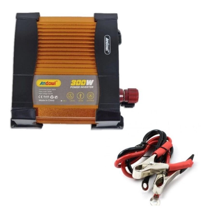 Invertor de tensiune auto Andowl KS300, 300W, 12V, 220V, 16 x 11 x 6.5cm, auriu Un invertor reprezinta un convertor destinat alimentarii sarcinilor de curent alternativ, plecand de la o sursa de curent continuu. Invertorul de tensiune este alimentat de la o sursa de curent continuu si are caracter de sursa de tensiune. Acesta este ideal pentru calatorii, drumetii, camping, corturi, deplasari cu barca oriunde nu exista electricitate. Descoperiți invertorul Andowl, soluția optimă pentru nevoile dvs. de energie în situații unde sursa de energie electrică externă nu este disponibilă. Cu unda sinusoidală modificată, invertorul oferă un curent stabil și consistent, fără intreruperi sau fluctuații, asigurându-vă că dispozitivele dvs. funcționează fără probleme. Capacitatea sa de a se conecta la o baterie de 12V și de a oferi curent printr-o priză de 220V și un port USB îl face extrem de versatil. Factorul de formă compact și portabilitatea îl recomandă pentru utilizare în vehicule, barci sau orice situație în care aveți nevoie de o sursă de energie electrică de încredere. Invertor cu undă sinusoidală modificată de 300W cu ventilator de răcire inteligent. De asemenea, are funcții de siguranță pentru a preveni supratensiune, subtensiune, suprasarcină, temperatură ridicată și protecție la scurtcircuit la ieșire. Invertorul Andowl este dispozitivul de încredere pe care îl căutați pentru a alimenta echipamentele în orice situație. Indiferent dacă sunteți pe drum, pe apă sau în natură, aveți nevoie de o sursă de energie stabilă și fiabilă la îndemână. Andowl este alegerea perfectă pentru aceste momente. Ventilator Inteligent: Răcire eficientă și silentioasă pentru o performanță optimă. Siguranță Avansată: Protecție împotriva supratensiunii, subtensiunii, suprasarcinii, temperaturilor ridicate și scurtcircuitelor. Indicator LED: Un mod convenabil de a verifica starea bateriei și funcționarea invertorului. Design Portabil: Mărime compactă pentru o ușurință în transport și utilizare. Caracteristici: Putere: 300W Tensiune intrare: 12 V Tensiune iesire: 220V, 50Hz USB: DC 5V 1A Indicator luminos: da Design compact Terminare de joasa tensiune: DC 9.2 - 9.8V Terminare de inalta tensiune: DC 15 - 16V Temperatura de functionare: -10°C ~ 50°C Dimensiuni: 16 x 11 x 6.5cm Culoare: Auriu Eficienta conversiei: ≥85% Pachetul include: 1 x Invertor auto 2 x Cablu de conectare