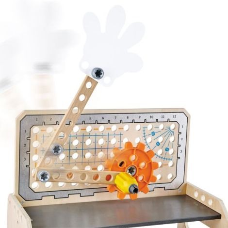 De multi ani, Hape a creat jucarii fantastice, de inalta calitate, folosind materiale ecologice si durabile, fiecare produs fiind atent proiectat pentru a stimula abilitatile senzoriale, fizice si emotionale.https://youtu.be/trm2hjJm1nQ Lasati-va imaginatia sa zboare si efectuati noi experimente si inventati noi dispozitive minunate in atelier. Acest set de joaca stiintific de 58 de piese include peste zece experimente si creatii uimitoare.Banc de lucru stiintific, ofera copiilor de pana la patru ani sansa de a interactiona cu lumea fizica. Aceasta jucarie din 58 de piese ii va invata pe copii despre principiile fizice de baza, inclusiv impulsul, sistemul de antrenare cu scripete si principiul parghiei.Lasa experimentele creative sa stimuleze curiozitatea copilului tau si sa spuna secretul fizicii. Micul tau om de stiinta va explora lumea reala construind si experimentand.O jucarie excelenta pentru dezvoltarea gandirii logice si a intelegerii principiilor stiintei, tehnologiei, ingineriei, artei si matematicii (STEAM).Pentru a ajuta micul tau om de stiinta sa aiba un avans, Hape a lansat o aplicatie „Know how” cu un afisaj de esantion finalizat si instructiuni detaliate.Dimensiuni: L: 36.6, l: 24.5, H: 44.5 cm;Dimensiuni cutie: L: 52, l: 6, H: 36 cm.