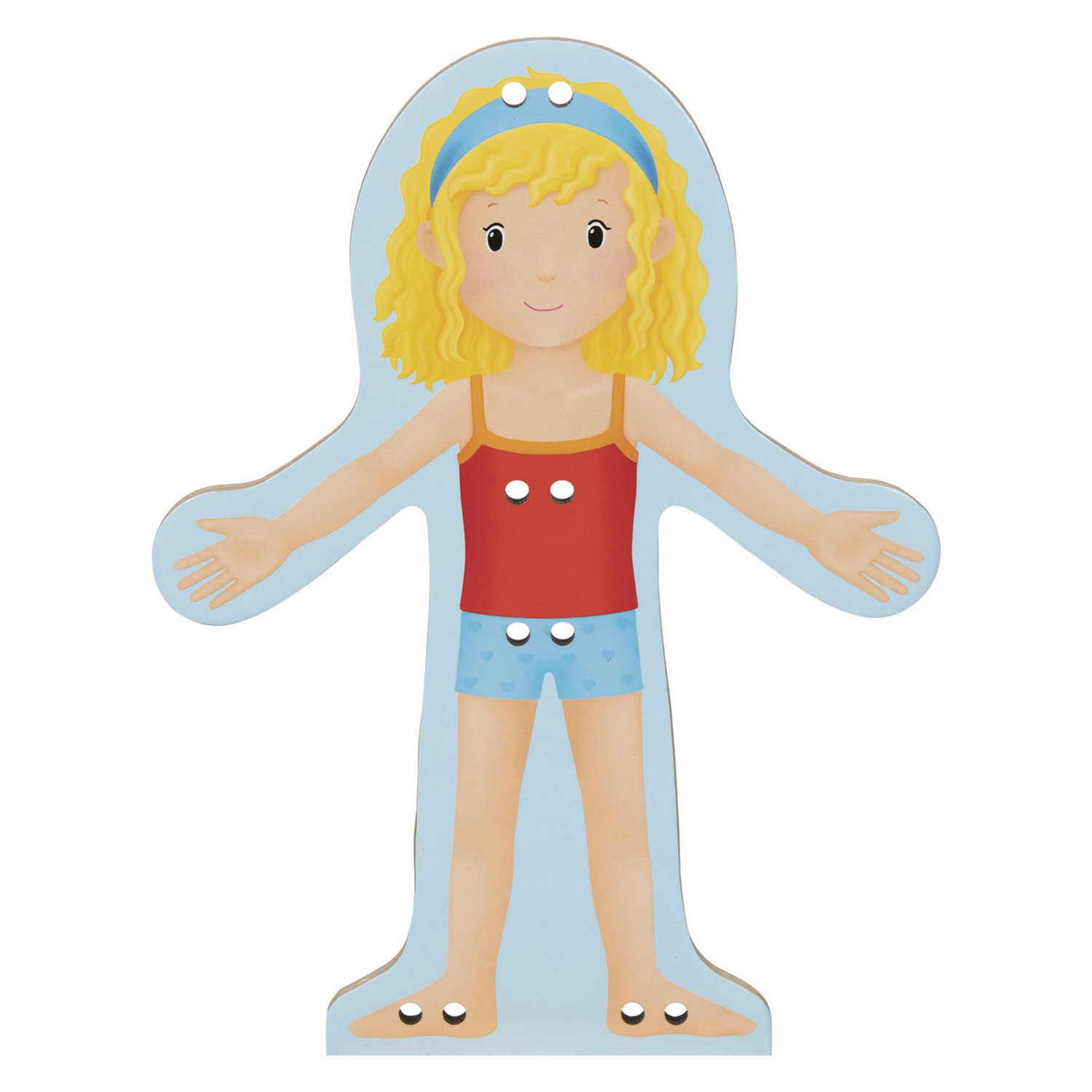 Atasati hainele din pasla de papusa cu sforile pentru a o pregati pentru orice ocazie! Ce pantofi, imbracaminte(e) si articole pentru acoperirea capului poarta ea? Papusa este din lemn, hainele din fetru.Goki este o mica companie de jucarii situata in nordul Germaniei, foarte aproape de Hamburg. Experimentatii creatori de jucarii inventeaza zilnic noi produse pentru copii care-i ajuta sa-si dezvolte imaginatia, creativitatea, abilitatile motorii si emotiile.