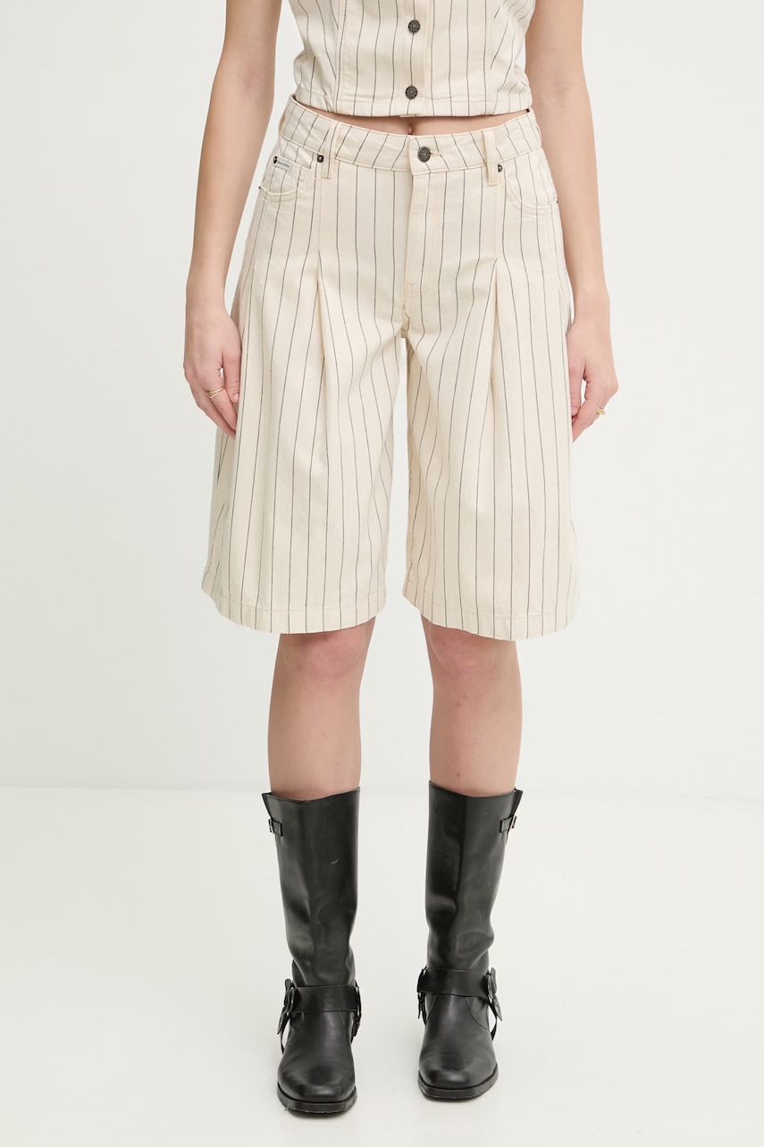 - Acest produs este realizat partial din poliester reciclat. - Acest produs a fost cusut partial din bumbac organic certificat, care este cultivat si recoltat din plante nemodificate genetic, fara a utiliza ingrasaminte sau pesticide. nic este mai ecologic, iar produsele realiza - Fason slim fit. - Model captusit - Picioarele finisate cu manseta. - Buzunare oblice. - Reglarea lățimii taliei interioare cu șnururi. - Banda elastica in talie. - Latimea in talie: 38 cm. - Latimea in solduri: 49 cm. - Inaltimea taliei: 29 cm. - Latimea in partea de jos: 13 cm. - Latimea piciorului: 31,5 cm. - Lungimea piciorului. 101,5 cm. - Dimensiunile date pentru marimea: M.