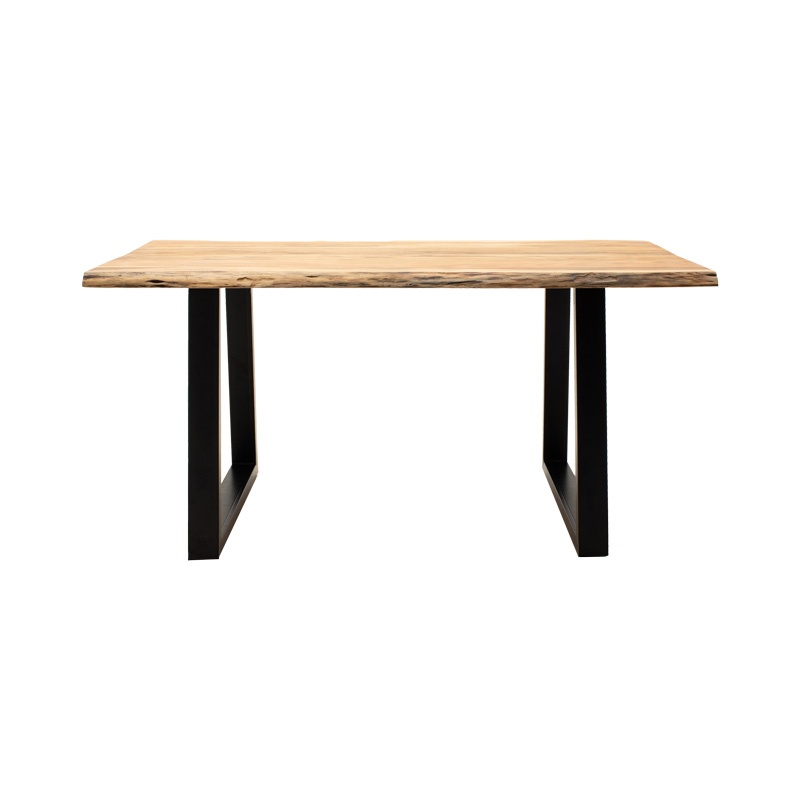 Masă Miles, natural/negru, 140x80x76 cm Descoperiți eleganța designului industrial cu masă Miles, o piesă de mobilier care îmbină armonios tonurile calde ale lemnului masiv cu rafinamentul metalului negru. Ideală atât pentru locuință, cât și pentru birou, această masă aduce un suflu creativ și modern spațiului dumneavoastră. Caracteristici cheie Material: Blat din lemn masiv de acacia, de înaltă calitate, cu o grosime de 3.7-4 cm, finisaj natural. Design unic: Fiecare piesă este unică, datorită desenului distinct al fibrelor lemnului. Pot apărea mici crăpături în timp, datorită contracției și expansiunii naturale, adăugând un plus de originalitate și farmec. Suport: Picioare din metal negru, oferind stabilitate și un contrast elegant cu lemnul. Dimensiuni: Lungime: 140 cm Lățime: 80 cm Înălțime: 76 cm Informații despre material Lemn de acacia: Cunoscut pentru durabilitatea și rezistența sa, lemnul de acacia este ideal pentru mobilier, oferind o estetică naturală și un finisaj deosebit. Metal: Metalul este un material durabil, rezistent la uzură, asigurând stabilitate și longevitate pieselor de mobilier. Instrucțiuni de întreținere Lemn de acacia: Curățați cu săpun ușor și apă, aplicând periodic produse de protecție pentru lemn pentru a-i păstra aspectul și durabilitatea. Metal: Pentru întreținerea metalului de interior, se recomandă ștergerea periodică cu o cârpă umedă. Note Produsul se livrează neasamblat, în ambalajul original, cu ghid de asamblare detaliat inclus. Nuantele de culoare pot varia ușor față de imaginile afișate pe ecran.