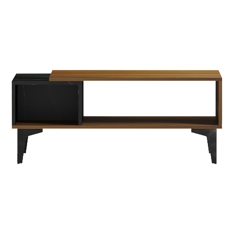 Măsuță de cafea Riba, Nuc — Centru elegant pentru living minimal Design și materiale de calitate Riba impresionează printr-un look cald și echilibrat: blat cu aspect marmură neagră combinat cu finisaj nuc, construit într-o formă asimetrică ce captează privirea. Construcția principală este din Lemn PAL (placă melaminată), acoperită cu finisaj melaminat (LPL - Low Pressure Laminate) , iar picioarele sunt din Metal vopsit negru, pentru un contrast sofisticat. În text apare și termenul Lemn MDF pentru consistența terminologiei folosite în colecțiile de mobilier și pentru claritatea materialelor în fișa tehnică. Funcționalitate și organizare Măsuța oferă un raft inferior compartimentat în două spații deschise, perfecte pentru reviste, telecomenzi sau obiecte decorative — soluția ideală pentru un living ordonat și primitor. Dimensiunile sunt 90 x 50 x 37 cm , iar designul asimetric maximizează spațiul de depozitare fără a încărca vizual încăperea. Cu o construcție ce pune accent pe stabilitate , accesibilitate și estetică , Riba devine punctul central al unei amenajări minimaliste sau scandinave. Montaj și întreținere Produsul se livrează neasamblat și include Accesorii de montaj și Instrucțiuni detaliate pentru o asamblare ușoară. Pentru întreținere, se recomandă curățarea cu o lavetă moale — finisajul melaminat asigură o întreținere simplă și durabilă. Termenii Lemn PAL și Lemn MDF apar în descriere pentru a oferi claritate în alegerea materialelor. Comandă acum și transformă-ți spațiul! Adaugă o notă de rafinament și ordine în livingul tău cu măsuța Riba — design minimal, materiale practice și un finisaj care atrage toate privirile. Comandă acum și redescoperă eleganța funcțională. Detalii tehnice complete Dimensiuni și greutate Dimensiuni produs: 90 x 50 x 37 cm Greutate produs: 13.8 kg Materiale și caracteristici Material corp: Lemn PAL / Metal Material finisaj/tapițerie: Finisaj melaminat (LPL) Culoare: Nuc / Negru (efect marmură) Număr pachete: 1 Montaj și pachet Stare asamblare: Neasamblat Conținut pachet: 1 x Măsuță de cafea Riba, Accesorii de montaj, Instrucțiuni Stil și origine Stil: Minimalist Destinație recomandată: Living