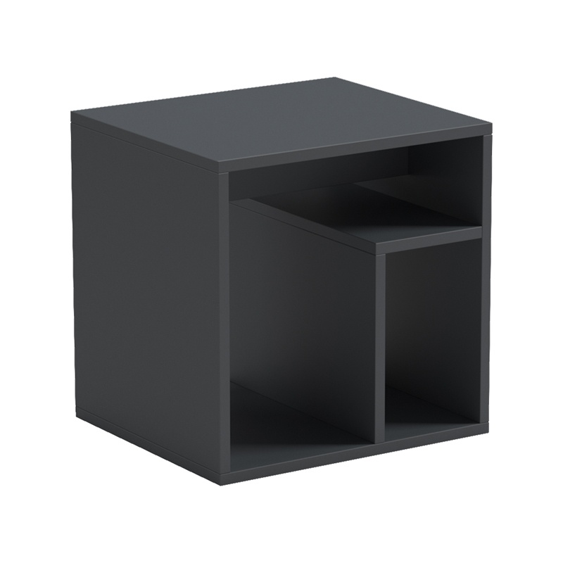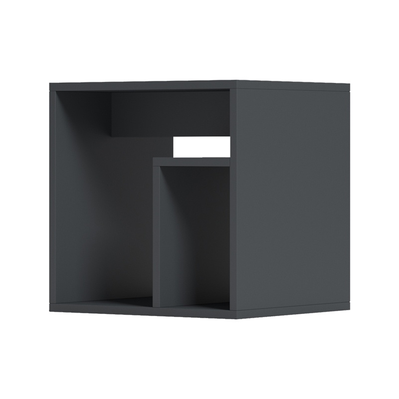 Măsuță laterală Doublo, anthracite, 40x35x40 cm Măsuța laterală Doublo este soluția modernă ideală pentru spațiile mici, oferind funcționalitate maximă chiar și în suprafețe reduse. Designul său asimetric, în trepte, creează multiple zone de depozitare, combinând stilul cu practicitatea. Aceasta se integrează perfect ca măsuță laterală în living sau hol, dar și ca noptieră în dormitor, fiind ideală pentru o lampă, cărți și obiecte personale. Caracteristici principale Măsuța Doublo impresionează prin designul său geometric și culoarea elegantă anthracite, aducând un plus de stil oricărui interior. Structura sa unică oferă două niveluri separate și două compartimente deschise, perfecte pentru organizarea creativă a cărților, revistelor și obiectelor mici. Specificații tehnice Material: Placă aglomerată cu finisaj melaminat de înaltă calitate, asigurând durabilitate și întreținere ușoară. Construcție compactă, fără picioare vizibile, oferind stabilitate și o siluetă curată și pătrată. Dimensiuni: Lungime 40 cm, Lățime 35 cm, Înălțime 40 cm. Culoare: Anthracite. Utilizare și întreținere Produsul este livrat neasamblat, în ambalaj de fabrică, cu un ghid detaliat de asamblare inclus. Este important de menționat că nuanța culorii produsului poate varia ușor față de reprezentarea fotografică de pe ecranul dumneavoastră. Măsuța laterală Doublo este alegerea perfectă pentru cei care doresc să îmbine estetica modernă cu funcționalitatea practică într-un spațiu redus.