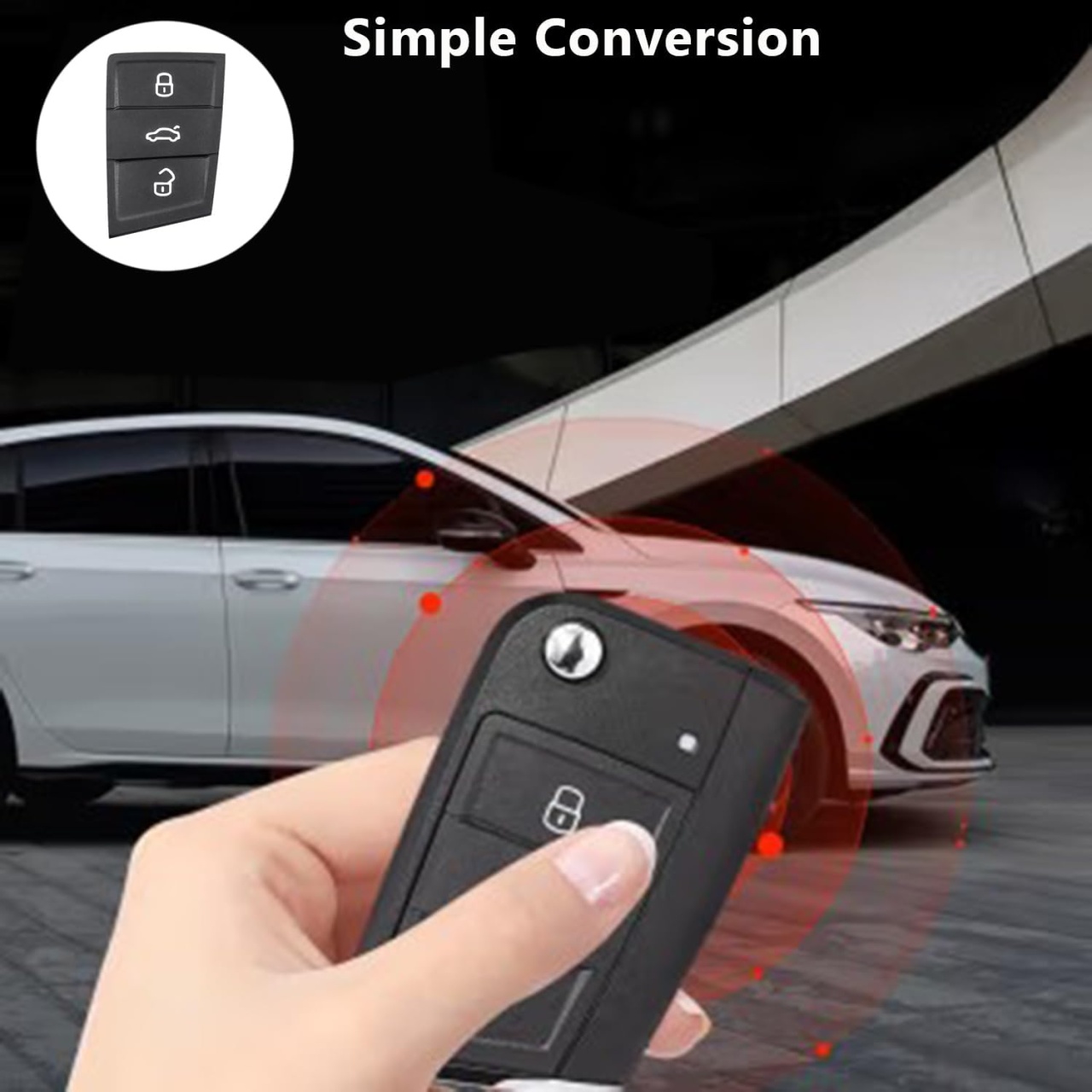 ✔ Membrana de cauciuc pentru telecomanda auto cu 3 butoane , compatibila cu mai multe modele din grupul VAG: Volkswagen, Seat si Skoda. ✔ Inlocuire rapida si usoara – pur si simplu scoti membrana veche si o montezi pe cea noua, fara scule speciale. ✔ Fabricata conform designului si dimensiunilor originale – testata pentru a asigura o potrivire perfecta si functionare impecabila. ✔ Realizata din material cauciucat ecologic si netoxic , rezistent la apa, moale, durabil si de lunga durata. ✔ Schimba aspectul cheii intr-un mod simplu si eficient, fara a inlocui toata carcasa. ? Compatibilitate auto extinsa (modele cu cheie 3 butoane, design identic): Volkswagen (VW): Golf 7 (MK7) Polo Passat B8 Tiguan T-Roc Seat: Ibiza Leon Ateca Arona Skoda: Fabia Karoq Kodiaq Scala ✔ Compatibil si cu alte modele ce folosesc acelasi tip de cheie cu 3 butoane. ✅ Avantaje: Solutie simpla si economica pentru inlocuirea butoanelor uzate Instalare DIY – se face in cateva minute Rezistenta la apa si uzura zilnica Pastrare a aspectului original al cheii Pachetul contine: 1 x membrana cauciuc butoane cheie Atentie: Produsul nu include carcasa, cip transponder sau electronica interna – este vorba doar de membrana din cauciuc pentru butoane.