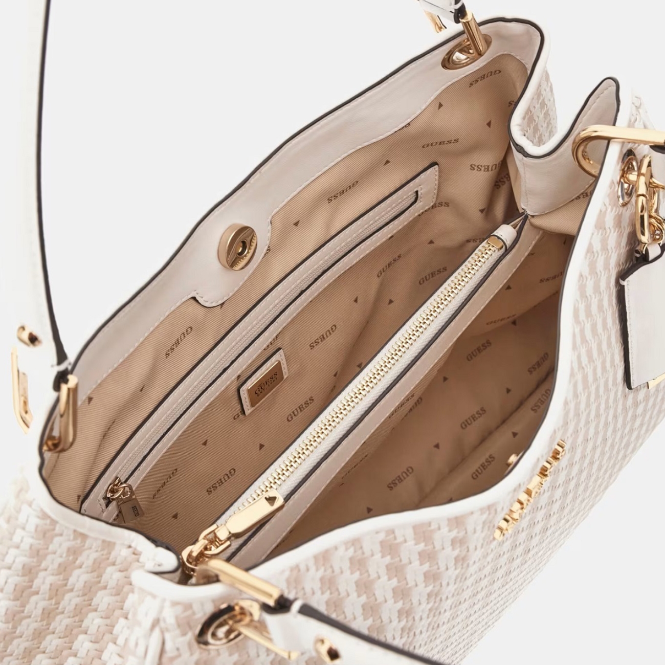 Geanta Mirema Woven Shopper de la Guess reinterpretează eleganța casual printr-un design texturat, inspirat de țesăturile rafinate. Construită din material textil durabil, cu un aspect de pânză împletită, această geantă adaugă un accent de feminitate sofisticată oricărei ținute. Logo-ul Guess auriu și detaliile metalice lucioase subliniază rafinamentul discret al modelului, în timp ce bretelele lungi asigură confort în purtare pe umăr. Interiorul spațios este ideal pentru activitățile de zi cu zi, oferind funcționalitate fără a compromite stilul. Este alegerea perfectă pentru femeia care dorește o geantă practică, dar cu un aer chic și contemporan.