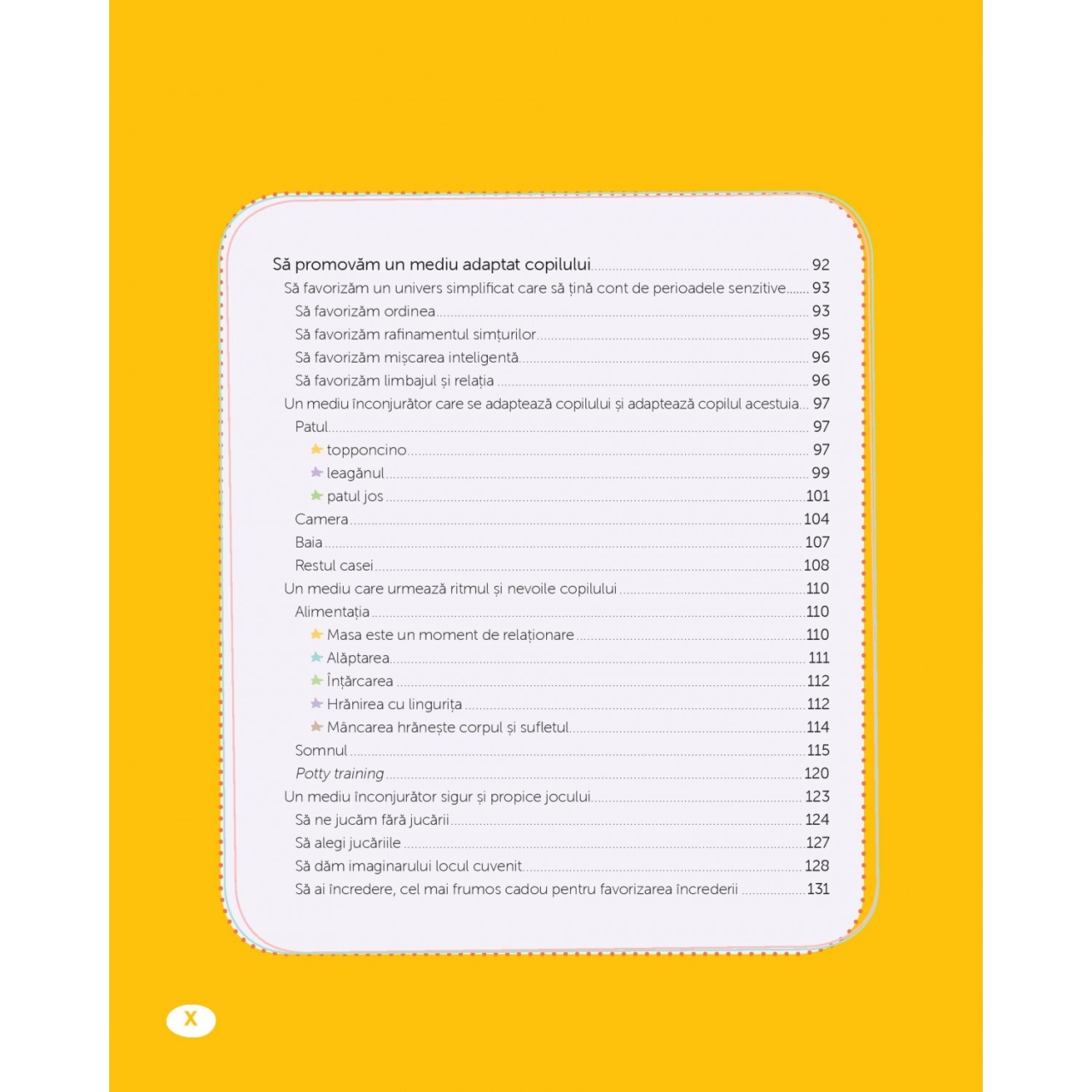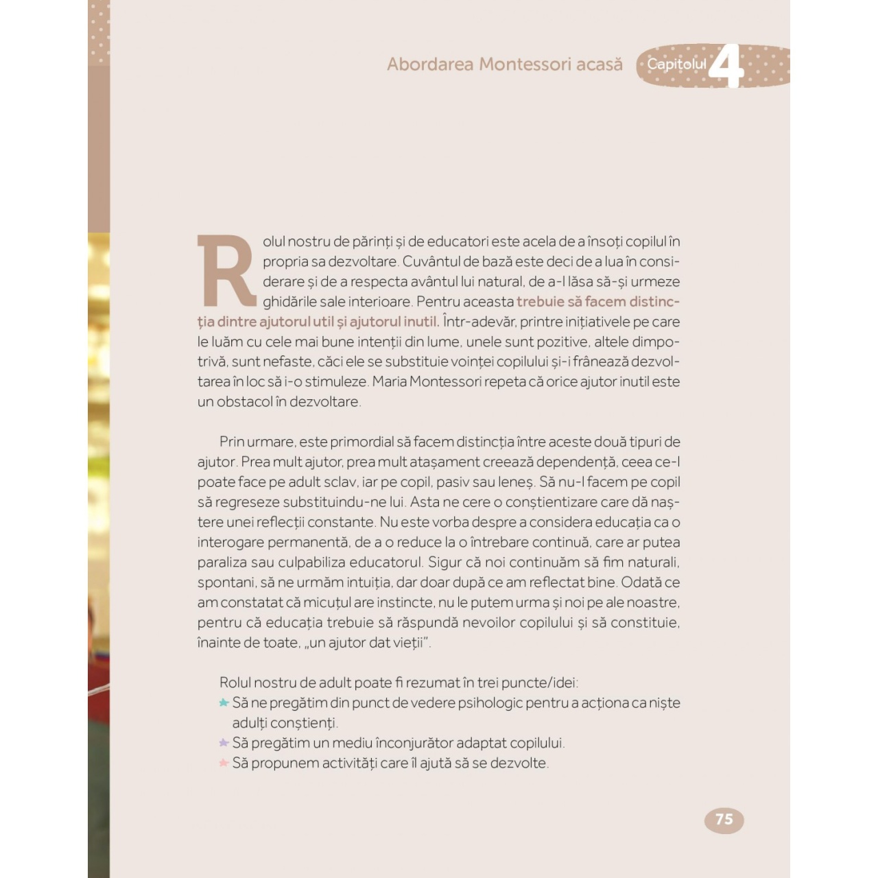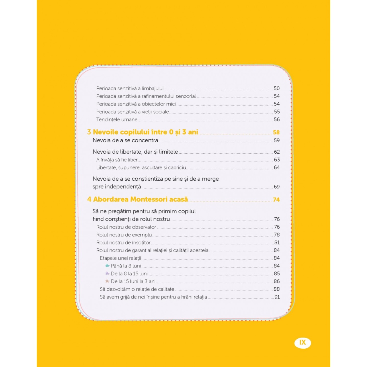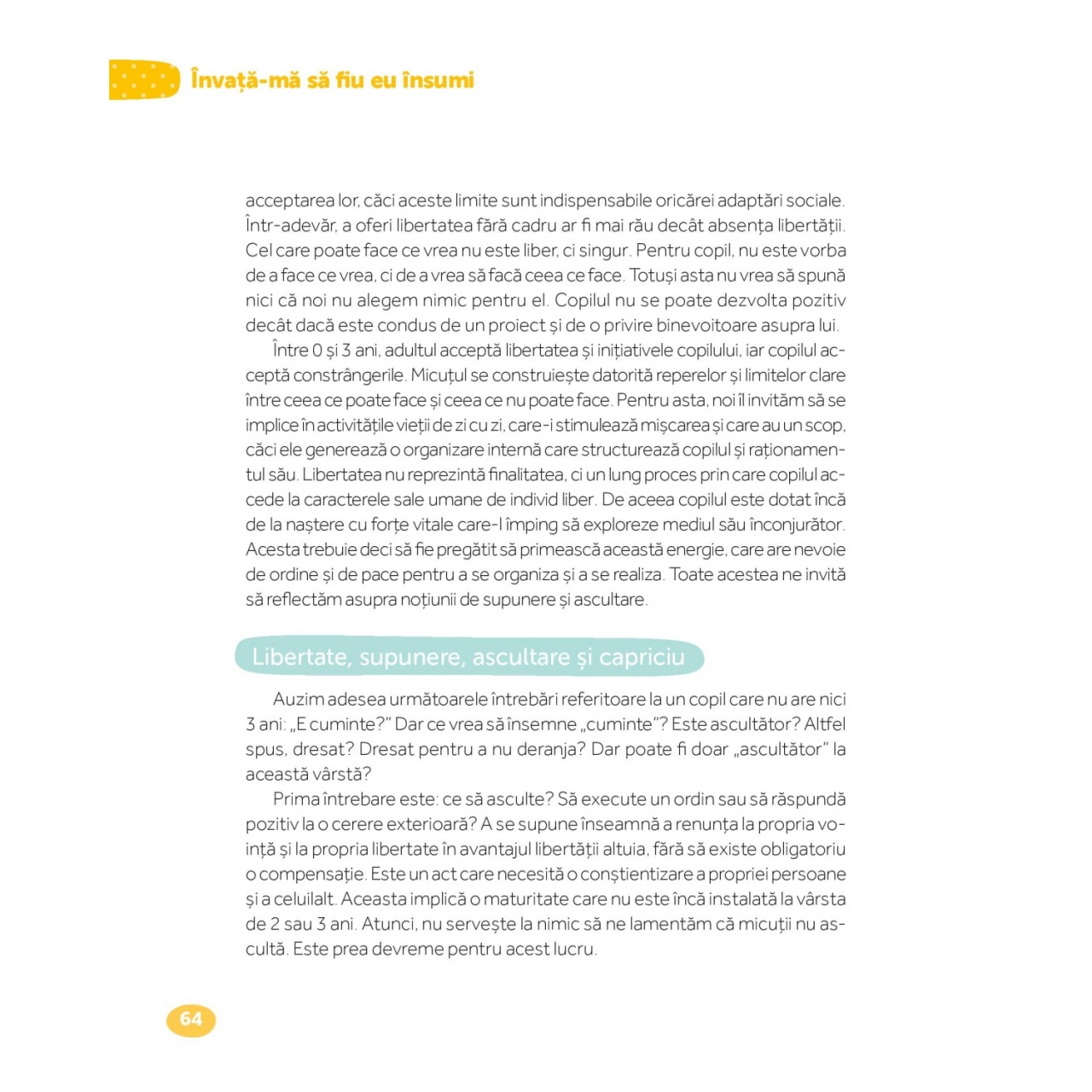 Învață-mă să fiu eu însumi Pedagogia Montessori permite fiecărui copil să se dezvolte în conformitate cu ritmul și cu personalitatea sa, ajutându-l să atingă potențialul maxim. Educatoare Montessori, Charlotte Poussin vă împărtășește din experiența sa, pentru a trăi abordarea Montessori alături de copil. Să ajuți fără să ajuți prea mult, să observi, să ai o atitudine favorabilă față de copil – un echilibru potrivit care favorizează calmul, autonomia, dezvoltă încrederea în sine, bucuria de a învăța, conștiința de sine și a existenței celuilalt. Această carte, bogat ilustrată, prezintă abordarea Montessori în perioada de la naștere și până la 3 ani într-un mod simplu și clar: Stadiile de dezvoltare și nevoile copilului. Ideile Montessori puse în practică împreună cu sfaturi concrete și exemple precise. Peste 100 de activități pedagogice ușor de pus în practică. Mărturii ale specialiștilor și profesioniștilor Montessori. Charlotte Poussin este educatoare Montessori, absolventă a Asociației Internaționale Montessori în anul 2000. Și-a desfășurat activitatea în Argentina, în Brazilia, în Franța și în Canada. A condus o școală Montessori și este autoarea casetelor pedagogice Montessori. Aplică principiile montessoriene împreună cu cei cinci copii ai ei. Specificații Pagini: 176 Mărimi: 19 x 15 cm Copertă: Necartonată