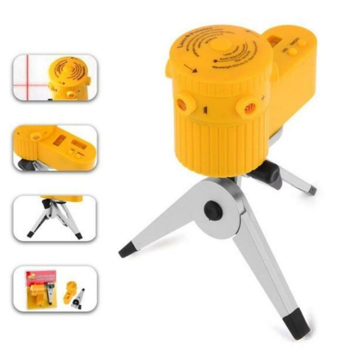 Nivela multifunctionala cu laser, cu mini trepied, rotativa Calitate noua si de inalta calitate Fabricat din plastic ABS plastic, usor si practic. Cu coloane verticale si orizontale de apa si indicator LED Un instrument de masurare trebuie sa aiba Nu te uita direct la linia laser. A se tine departe de apa. Scutere de tip foarfece sunt incluse. Culoare: galben Dimensiunea articolului: 105 x 55 x 66 mm Lungimea undelor laser: 630 - 680 nm Moduri: linia incrucisata indicatorul punctului laser linia de nivel a solului linia verticala linia de nivel LED-ul vedere de noapte