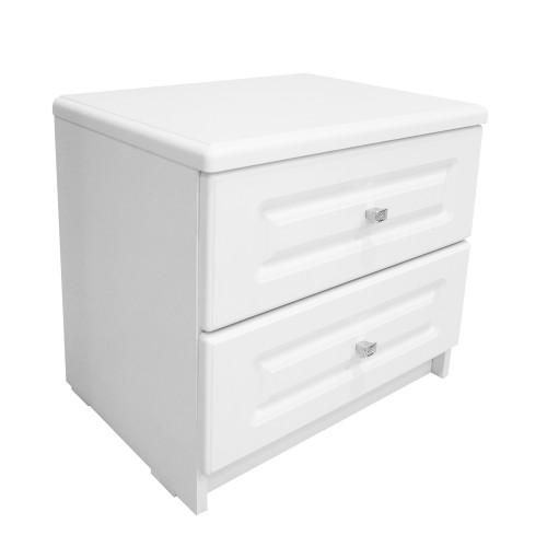 Noptiera Sara cu 2 sertare. Dimensiuni (l x h x a): 510 x 445 x 389 mm Culoare: Alb Materiale folosite: Carcasa din pal melaminat, fete sertare si capac din MDF infoliat. *Nota: Schita de montaj nu se afla in interiorul coletului intre piesele de mobila. Schita de montaj o sa fie atasata pe spatele facturii.