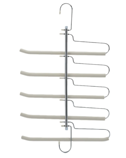 Organizatorul pentru pantaloni cu 5 suporturi, fabricat din oțel inoxidabil, este soluția ideală pentru maximizarea spațiului în dulapul tău. Structura sa inteligentă permite depozitarea a până la 5 perechi de pantaloni pe verticală sau orizontală, menținându-le ordonate și fără cute. Suporturile sunt rotative și ușor de utilizat, permițând acces rapid la orice pereche dorită. Designul compact economisește spațiu și asigură stabilitate, iar materialele rezistente garantează o utilizare îndelungată. Ideal pentru pantaloni, eșarfe sau cravate, organizatorul aduce ordine și funcționalitate în garderoba ta, păstrând hainele aerisite și accesibile. Specificații tehnice: Tip produs: Organizator pantaloni Suporturi: 5 bare individuale Material: Oțel inoxidabil + plastic rezistent Culoare: Argintiu Tip prindere: Suport agățare dulap
