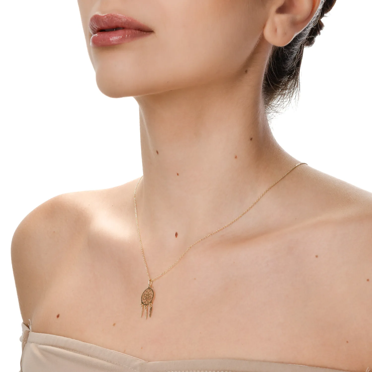 Pandantivul capcana de vise din aur galben aduce un simbol plin de semnificatie intr-un design contemporan. Inspirat de ideea protectiei si a visurilor implinite, piesa completeaza discret orice tinuta si poate fi purtata zilnic sau in momente speciale. Finisajul luminos al aurului galben accentueaza forma delicata si ofera un plus de expresivitate. O alegere moderna pentru un stil personal si autentic. Descopera DAAR!