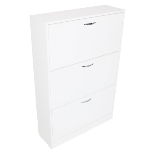Dimensiuni (l x h x a): 594 x 1202 x 257 mm Culoare: Alb. Descriere: Pantofar cu 3 usi mic alb, cu cate 2 randuri de depozitare a pantofilor pe fiecare usa, suporti metalici pentru o rezistenta sporita la uzura in timp, fabricat din PAL melaminat cu grosimea 16 mm, laterale si copac cantuite cu cant ABS cu grosimea de 2 mm pentru o rezistenta sporita la lovituri, PAL melaminat cu grosimea de 8 mm in interiorul spatiilor de depozitare pentru a se evita zgarierea pantofilor, maner din plastic cu filet metalic, picioruse din plastic la baza pantofarului cu rol de protectie impotriva zgarierii pardoselilor. *Nota: Schita de montaj nu se afla in interiorul coletului intre piesele de mobila. Schita de montaj o sa fie atasata pe spatele facturii.