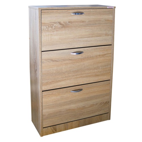 Dimensiuni (l x h x a): 794 x 1202 x 257 mm Culoare: Sonoma. Descriere: Pantofar cu 3 usi mare sonoma, cu cate 2 randuri de depozitare a pantofilor pe fiecare usa, suporti metalici pentru o rezistenta sporita la uzura in timp, fabricat din PAL melaminat cu grosimea 16 mm, laterale si copac cantuite cu cant ABS cu grosimea de 2 mm pentru o rezistenta sporita la lovituri, PAL melaminat cu grosimea de 8 mm in interiorul spatiilor de depozitare pentru a se evita zgarierea pantofilor, maner din plastic cu filet metalic, picioruse din plastic la baza pantofarului cu rol de protectie impotriva zgarierii pardoselilor. *Nota: Schita de montaj nu se afla in interiorul coletului intre piesele de mobila. Schita de montaj o sa fie atasata pe spatele facturii.