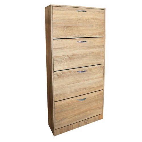 Dimensiuni (l x h x a): 594 x 1565 x 257 mm Culoare: Sonoma. Descriere: Pantofar cu 4 usi mic sonoma, cu cate 2 randuri de depozitare a pantofilor pe fiecare usa, suporti metalici pentru o rezistenta sporita la uzura in timp, fabricat din PAL melaminat cu grosimea 16 mm, laterale si copac cantuite cu cant ABS cu grosimea de 2 mm pentru o rezistenta sporita la lovituri, PAL melaminat cu grosimea de 8 mm in interiorul spatiilor de depozitare pentru a se evita zgarierea pantofilor, maner din plastic cu filet metalic, picioruse din plastic la baza pantofarului cu rol de protectie impotriva zgarierii pardoselilor. *Nota: Schita de montaj nu se afla in interiorul coletului intre piesele de mobila. Schita de montaj o sa fie atasata pe spatele facturii.