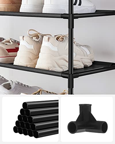 Asamblare fara griji: Nu trebuie sa va fie teama de asamblarea acestui suport de pantofi, deoarece sunt furnizate instructiuni usor de citit, ilustrate si piese etichetate pentru o asamblare fara probleme. Asamblare mai usoara, viata mai usoara! O casa stabila pentru pantofii dumneavoastra: Fiti siguri, acest raft pentru pantofi are o durata de viata lunga! Este fabricat din tuburi metalice rezistente si tesatura netesuta durabila, oferind pantofilor dvs. un suport stabil si fiabil Economie de spatiu, dar spatios: Cu o dimensiune de 45 x 28 x 173 cm, acest suport de pantofi cu 10 niveluri va ajuta sa economisiti spatiu pretios pe podea, oferind in acelasi timp o multime de spatiu de depozitare. Asadar, de ce sa nu va rasfatati cu acest suport spatios pentru o casa ordonata? Pentru o utilizare flexibila: Puteti folosi acest suport de pantofi in felul dvs.: impartiti-l in 2 parti si folositi-le in camere separate sau indepartati unele rafturi pentru a se potrivi pantofilor sau cizmelor mai inalte - flexibil, nu? Versatila, de asemenea: Invitati acest organizator de depozitare a pantofilor in hol, camera de zi, dressing, dormitor sau oriunde aveti nevoie de spatiu de depozitare suplimentar. Oriunde folositi suportul de pantofi, acesta va poate pastra intotdeauna pantofii curati si ordonati
