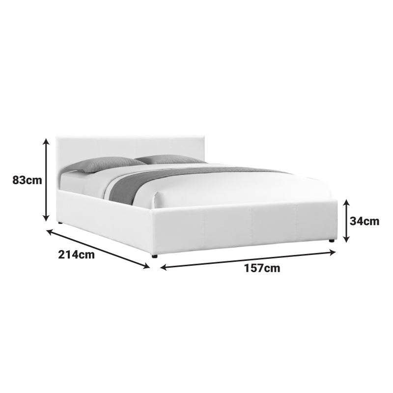 Pat dublu Dellia, alb, 150x200 cm Transformă-ți dormitorul într-un spațiu elegant și funcțional cu patul dublu Dellia. Acest pat nu doar că îmbunătățește estetica camerei tale, dar oferă și un confort maxim datorită construcției sale robuste și materialelor de calitate superioară. Cu un design modern și un spațiu de depozitare integrat, patul Dellia este alegerea ideală pentru cei care doresc să combine stilul cu utilitatea. Caracteristici principale Patul Dellia se remarcă prin designul său elegant și funcționalitatea sa practică. Este tapițat cu piele ecologică de înaltă calitate, adăugând o notă de lux și rafinament oricărui interior modern. Specificații tehnice Cadru din lemn, asigurând durabilitate și ușurință în curățare. Culoare: alb. Dotat cu lamele anatomice pentru un somn odihnitor și revigorant. Mecanism de ridicare ușor de utilizat, dezvăluind un compartiment spațios pentru depozitare. Picioare negre din PP, înălțime de 2,5 cm. Compatibil cu o saltea de 150x200 cm (neinclusă). Utilizare și întreținere Patul Dellia este livrat neasamblat, cu un ghid detaliat de asamblare inclus. Este recomandat să urmați instrucțiunile pentru a asigura o montare corectă și sigură. Culoarea produsului poate varia ușor față de imaginile afișate pe ecranul dvs. Combinând soluții practice de depozitare cu un aspect vizual rafinat, patul Dellia este alegerea ideală pentru cei care caută funcționalitate fără a compromite stilul.