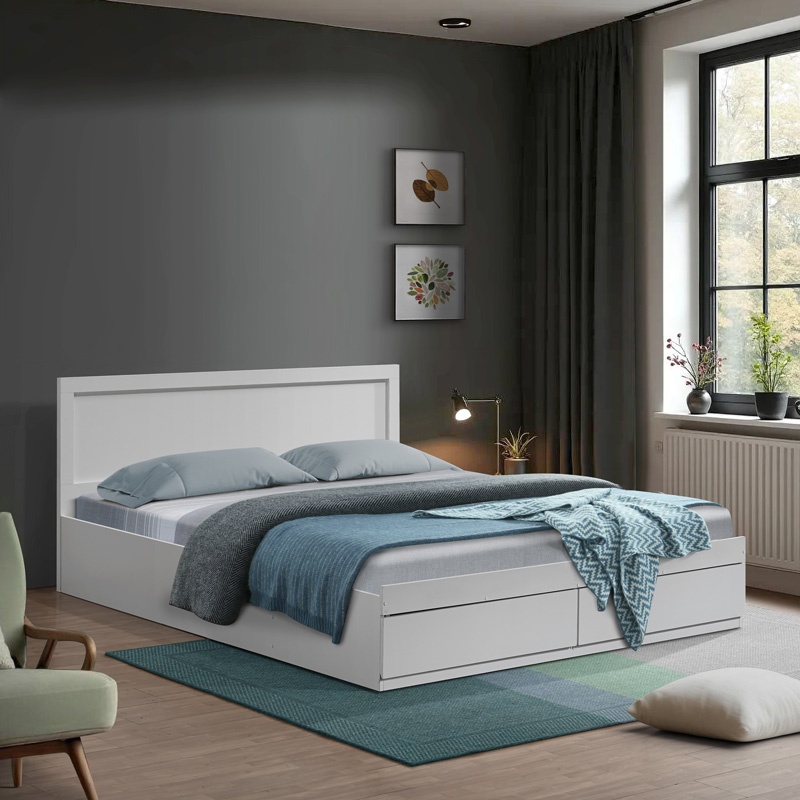 Pat dublu Olympus, alb, 140x200 cm Patul dublu Olympus este alegerea ideală pentru dormitorul tău, combinând simplitatea cu funcționalitatea. Cu un design minimalist și linii curate, acest pat aduce un sentiment de căldură și liniște în orice spațiu. Baza cu depozitare integrată oferă spațiu suplimentar pentru organizarea lucrurilor personale, făcându-l o soluție practică și elegantă. Caracteristici principale Patul Olympus se remarcă prin designul său modern și funcțional, fiind perfect pentru orice dormitor contemporan. Culoarea albă și finisajul de calitate adaugă un plus de eleganță și versatilitate. Specificații tehnice Material: PAL de înaltă calitate și MDF cu furnir de hârtie rezistent la uzură și deteriorare. Culoare: Alb Somieră cu lamele din lemn pentru un somn odihnitor și reconfortant. Două sertare incluse pentru depozitarea obiectelor personale. Compatibil cu o saltea de 140x200 cm (salteaua nu este inclusă în preț). Dimensiuni produs Lungime: 145 cm Lățime: 205 cm Înălțime: 80 cm Utilizare și întreținere Patul Olympus este livrat neasamblat, în ambalajul original de fabrică, și include un ghid detaliat de asamblare. Este recomandat să urmați instrucțiunile pentru a asigura o montare corectă și sigură. Vă rugăm să rețineți că nuanța culorii produsului poate varia ușor față de reprezentarea fotografică pe ecranul dumneavoastră.