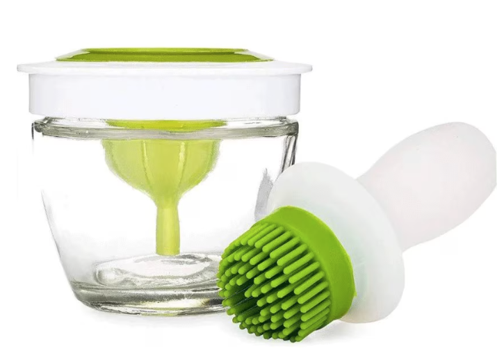 Pensula din silicon este ideala pentru ca preparatele dumneavoastra sa aibe un gust cat mai bun si sa beneficieze de condimentele preferate. Foarte usor de utilizat si ingenios, introduceti in bol ingredientele lichide pe care doriti sa le utilizati pentru preparatele dumneavoastra, dupa care utilizati pensula cu peri din silicon si pompita-maner. Se poate utiliza pentru galbenusul de oua, ulei de masline, miere si multe altele. Pesula cu pompita si peri din silicon poate fi utilizata pentru a unge puiul gatit la cuptor, prajituri de casa, placinte, cornuri, porumb, etc. Specificatii Pensula din silicon design modern usor de curatat dupa utilizare pensula cu peri din silicon si maner cu pompita recipient inclus 148ml Dimensiuni: pensula cu lungime de aprox. 12 cm bol cu diametrul de aprox. 8.5 cm si inaltime de 8 cm