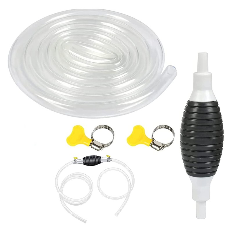 Pompa manuala pentru transfer lichide Pompa manuala tip sifon pentru lichide, este un accesoriu extrem de util pentru orice casa. Aceasta pompa poate fi folosita cu usurinta pentru diverse lichide precum: benzina, ulei, apa, bere, etc. De asemenea, poate fi folosita la schimbarea sau pomparea apei in acvarii mai mari. Instrumentul perfect pentru pomparea lichidelor Potrivita pentru combustibil, uleiuri si apa distilata Fixarea furtunului la pompa se face cu clemele speciale incluse in pachet Un accesoriu foarte util in orice casa sau atelier Pachetul contine: 1 x pompa manuala, 1 x furtun, 2 x cleme prindere. Un accesoriu manual pentru fiecare casa Pompa manuala tip sifon pentru lichide este un accesoriu extrem de util pentru orice casa. Aceasta pompa poate fi folosita cu usurinta pentru diverse lichide precum: benzina, ulei, apa, bere, etc. De asemenea, poate fi folosita la schimbarea sau pomparea apei in acvarii mai mari. Potrivita pentru toate tipurile de lichide Pompa manuala usoara si portabila ce poate fi folosita pentru tot felul de lichide precum: combustibul, ulei, apa, bere, etc Usor de folosit - Setul contine un furtun transparent din PVC, flexibil si durabil, rezistent la coroziune si permite accesul usor la containere. Furtunul se ataseaza la pompa cu clemele de prindere din pachet. Pachetul contine: 1 x pompa manuala, 1 x furtun, 2 x cleme prindere. Material: PVC Dimensiunea furtunului: lungime – 1 m, diametru exterior – 8 mm, grosime – 2 mm Atentionare: Aceasta pompa nu se foloseste pentru apa sarata sau alte lichide corozive. Lichidul pe care doriti sa il mutati trebuie sa fie pozitionat mai sus decat vasul in care mutati. Furtunul de absorbtie trebuie pozitionat in interiorul lichidului, nu doar la suprafata lichidului. Pompa este potrivita pentru vehiculele care nu au protectie impotriva furtului de combustibil. Important: 1. Inainte de utilizare taiati furtunul din pachet in 2 bucati, in functie de nevoile dumneavoastra; 2. Fiti atent la directia sagetii de pe pompa. Sageata trebuie sa fie orientata in directia de pompare a lichidului.