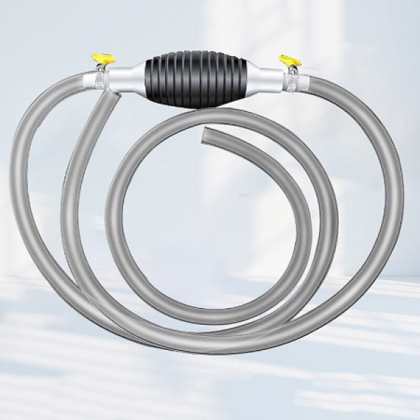 Pompa manuala pentru transfer lichide Pompa manuala tip sifon pentru lichide, este un accesoriu extrem de util pentru orice casa. Aceasta pompa poate fi folosita cu usurinta pentru diverse lichide precum: benzina, ulei, apa, bere, etc. De asemenea, poate fi folosita la schimbarea sau pomparea apei in acvarii mai mari. Instrumentul perfect pentru pomparea lichidelor Potrivita pentru combustibil, uleiuri si apa distilata Fixarea furtunului la pompa se face cu clemele speciale incluse in pachet Un accesoriu foarte util in orice casa sau atelier Pachetul contine: 1 x pompa manuala, 1 x furtun, 2 x cleme prindere. Un accesoriu manual pentru fiecare casa Pompa manuala tip sifon pentru lichide este un accesoriu extrem de util pentru orice casa. Aceasta pompa poate fi folosita cu usurinta pentru diverse lichide precum: benzina, ulei, apa, bere, etc. De asemenea, poate fi folosita la schimbarea sau pomparea apei in acvarii mai mari. Potrivita pentru toate tipurile de lichide Pompa manuala usoara si portabila ce poate fi folosita pentru tot felul de lichide precum: combustibul, ulei, apa, bere, etc Usor de folosit - Setul contine un furtun transparent din PVC, flexibil si durabil, rezistent la coroziune si permite accesul usor la containere. Furtunul se ataseaza la pompa cu clemele de prindere din pachet. Pachetul contine: 1 x pompa manuala, 1 x furtun, 2 x cleme prindere. Material: PVC Dimensiunea furtunului: lungime – 1.5 m, diametru exterior – 8 mm, grosime – 2 mm Atentionare: Aceasta pompa nu se foloseste pentru apa sarata sau alte lichide corozive. Lichidul pe care doriti sa il mutati trebuie sa fie pozitionat mai sus decat vasul in care mutati. Furtunul de absorbtie trebuie pozitionat in interiorul lichidului, nu doar la suprafata lichidului. Pompa este potrivita pentru vehiculele care nu au protectie impotriva furtului de combustibil. Important: 1. Inainte de utilizare taiati furtunul din pachet in 2 bucati, in functie de nevoile dumneavoastra; 2. Fiti atent la directia sagetii de pe pompa. Sageata trebuie sa fie orientata in directia de pompare a lichidului.
