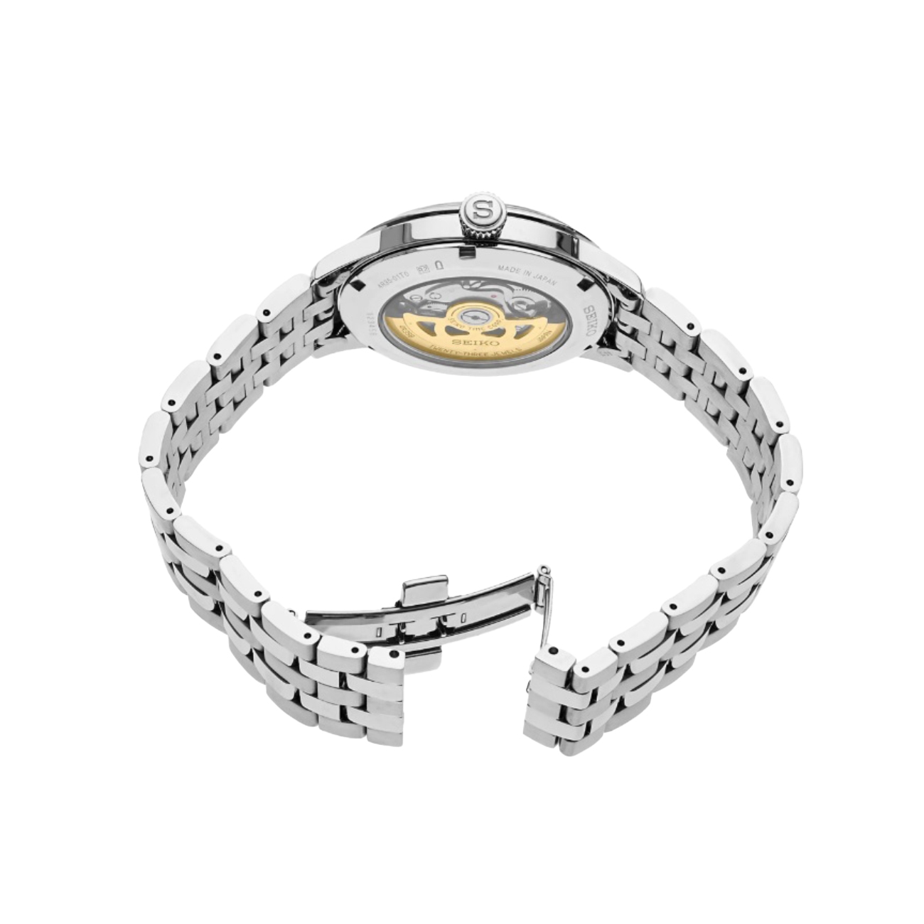 Seiko este un brand japonez ce a luat naștere în 1881, în Tokyo, când un tânăr antreprenor a decis să-și deschidă un magazin în care vindea și repara ceasuri. De atunci Seiko a acumulat peste 130 de ani de experiență și continuă să ofere clienților săi produse inovative și durabile, pe care te poți baza mereu. Colecția Presaje combină măestia tradițională, estetica japoneză și experiența Seiko pentru a obține ceasuri deosebite, frumoase și calitative. Presage SRPB41J1 este un ceas bărbătesc, ce funcționează cu un mecanism automatic și este rezisant la contactul cu apa până la 50m. Carcasa și brățara sunt realizate din oțel inoxidabil, iar cadranul analog este albastru și indică ora, minutele, secundele și data.