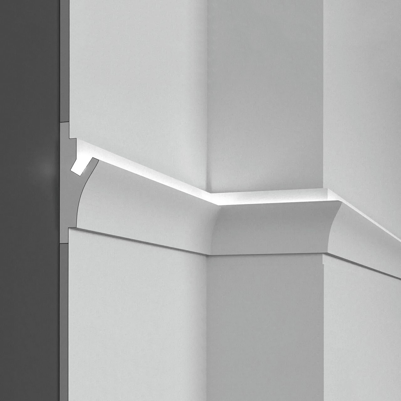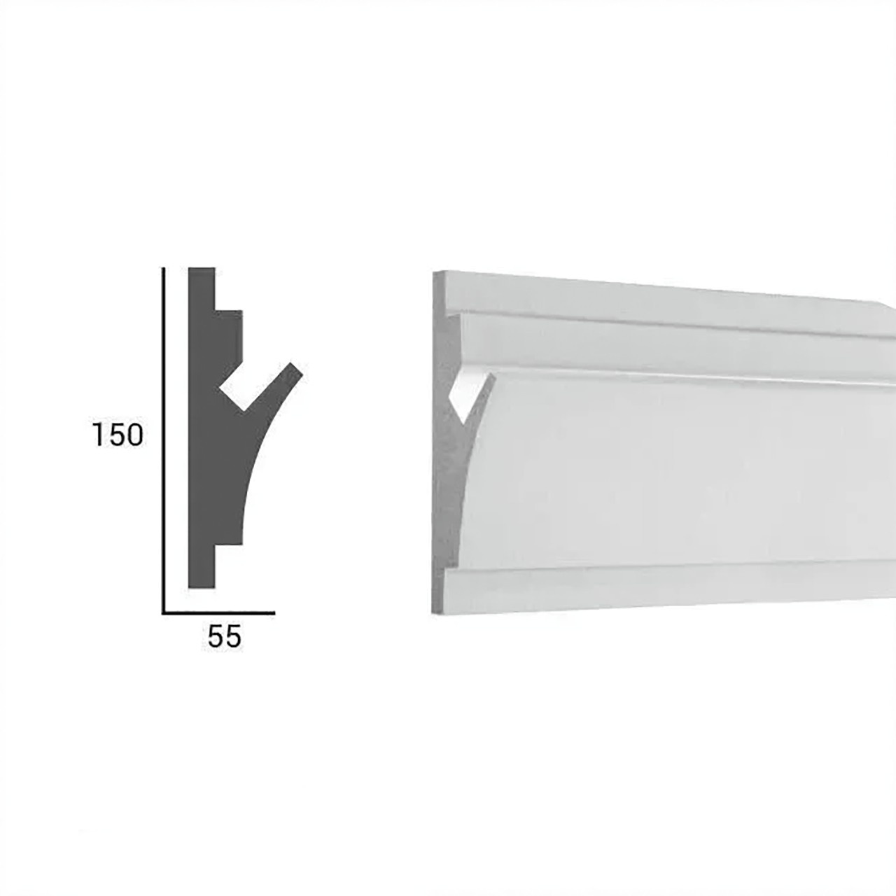 Acest profil pentru banda LED este acoperit cu rasina minerala KD402, ceea ce ii confera o durabilitate sporita si o rezistenta crescuta la impact si uzura. Cu dimensiunile de 15 cm inaltime s 5.5 cm adancime, profilul are o forma speciala care ascunde banda LED, astfel incat lumina sa fie dispersata uniform si sa ofere un efect estetic placut. Montarea acestui profil este simpla si se poate face atat in spatii rezidentiale, cum ar fi living-uri, bucatarii sau dormitoare, cat si in spatii comerciale sau industriale, precum restaurante, hoteluri sau birouri. Fiind compatibil cu banda LED, acest profil este ideal pentru a crea efecte de iluminare ambientala sau pentru a lumina anumite zone sau obiecte cu scop decorativ. Banda LED poate fi integrata in profil, oferind o sursa de lumina eficienta.