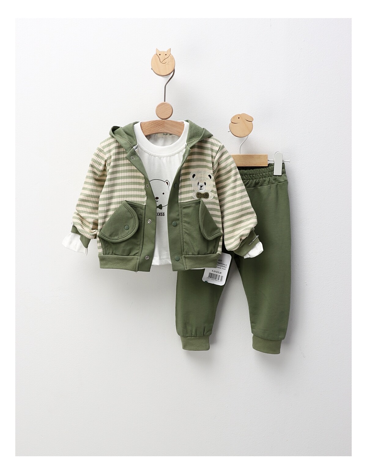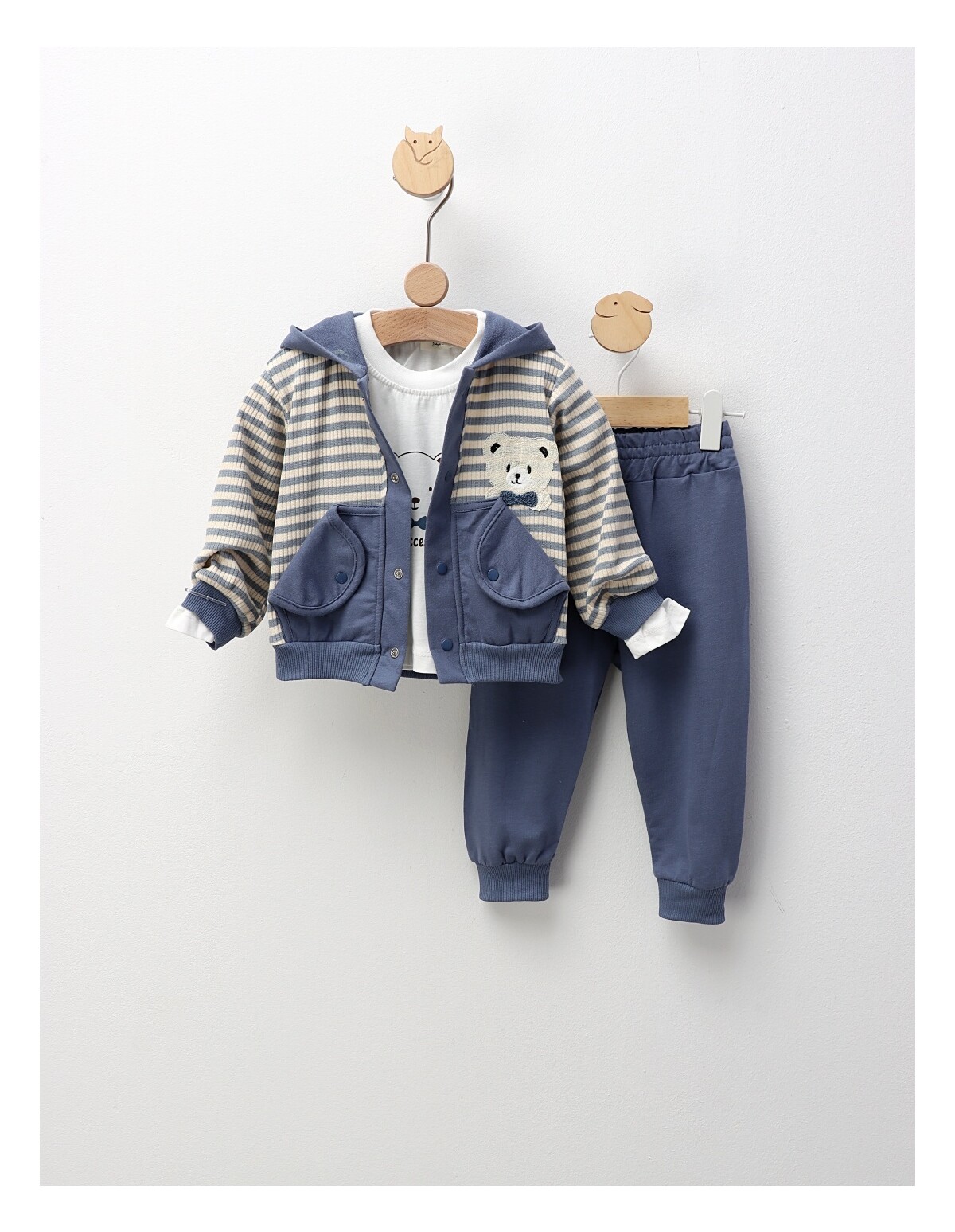 Pulover pentru băieței, realizat din material premium (73,5% bumbac, 26,5% poliester), moale și fin la atingere, oferind confort și căldură. Perfect pentru micuți între 9 și 24 de luni, combină delicatețea cu durabilitatea, fiind ideal pentru joacă, somn și plimbări confortabile.