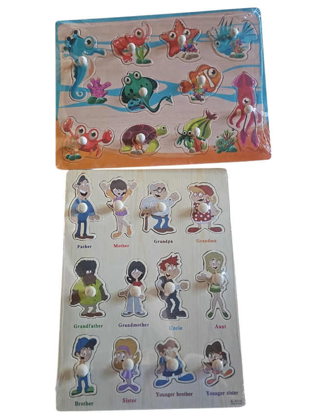 Puzzle-uri Educative din Lemn de Încăstrat – Engros, Diverse Modele (Animale Marine, Spațiale, Familie, Dinozauri, Pirați, Forme) – Dezvoltă Motricitatea Fină și Gândirea Logică pentru Copii Acest lot de puzzle-uri educative din lemn de încăstrat, disponibile en-gros, reprezintă o achiziție excelentă și versatilă pentru magazinele de jucării, librării, supermarketuri, sau pentru furnizorii de materiale didactice pentru grădinițe și școli. Concepute pentru a stimula dezvoltarea cognitivă, motricitatea fină, coordonarea ochi-mână și abilitățile de rezolvare a problemelor, aceste puzzle-uri oferă o modalitate distractivă și interactivă de învățare prin joacă pentru copii. Caracteristici Generale: Material Ecologic și Durabil: Puzzle-urile sunt fabricate din lemn de înaltă calitate, un material ecologic, sigur pentru copii și extrem de durabil. Piesele sunt colorate cu vopsele non-toxice, rezistente la uzură, asigurând o utilizare de lungă durată. Fiecare piesă are un buton (mâner) de lemn, facilitând prinderea și manipularea de către mâinile mici. Design de Încăstrat (Peg Puzzle / Knob Puzzle): Fiecare puzzle constă într-o placă de bază din lemn cu locașuri decupate și piese corespondente, colorate, pe care copiii trebuie să le potrivească. Butonul (peg/knob) de pe fiecare piesă ajută la dezvoltarea prinderii tip pensă și a motricității fine. Diverse Modele Tematice Atractive: Lotul include o varietate bogată de ilustrații captivante, atrăgând diverse preferințe ale copiilor: Animale Marine: Ilustrații cu creaturi subacvatice vesele (căluți de mare, caracatițe, pești, stele de mare, crabi, broaște țestoase, calamari), pe un fundal albastru acvatic. (Vizibile în ambele imagini, sus) Teme Spațiale și Vehicule Aeriene: Ilustrații cu roboți, OZN-uri, avioane, rachete și alte vehicule spațiale, pe un fundal albastru deschis (Imaginea 2, mijloc). Animale Vesele și Forme Geometrice: Modele cu animale stilizate (broscuțe, ursuleți panda, omizi, iepurași, flori, melci) și forme geometrice de bază (inimă, stea, semicerc, pentagramă). Unele modele combină și textul cu formele (Imaginea 2, sus). Dinozauri: Ilustrații cu dinozauri simpatici în diverse ipostaze, într-un peisaj preistoric (Imaginea 1, sus). Pirați: Ilustrații cu pirați, corăbii, cufere de comori și elemente specifice tematicii aventurii pe mare (Imaginea 1, jos). Membrii Familiei: Ilustrații cu personaje reprezentând membri ai familiei (tată, mamă, bunic, bunică, unchi, mătușă, frate, soră), ideale pentru învățarea relațiilor familiale (Imaginea 3, jos). Culori Vibrante și Ilustrații Clare: Imaginile sunt viu colorate și clar definite, captând atenția copiilor și făcând procesul de asamblare mai plăcut. Beneficii de Dezvoltare Multiple: Puzzle-urile sunt excelente pentru: Dezvoltare Cognitivă: Recunoașterea formelor, culorilor, animalelor, vehiculelor, membrilor familiei, dezvoltarea vocabularului. Abilități Motrice Fine: Manipularea butoanelor și potrivirea pieselor în locașuri ajută la dezvoltarea dexterității și coordonării ochi-mână. Rezolvarea Problemelor: Găsirea locului potrivit pentru fiecare piesă încurajează gândirea logică și răbdarea. Joc de Rol și Imaginație: Utilizarea puzzle-urilor ca elemente de decor sau de bază pentru jocuri imaginative. Ambalaj: Fiecare puzzle este, de obicei, ambalat individual în folie transparentă, care protejează piesele și permite vizualizarea designului.