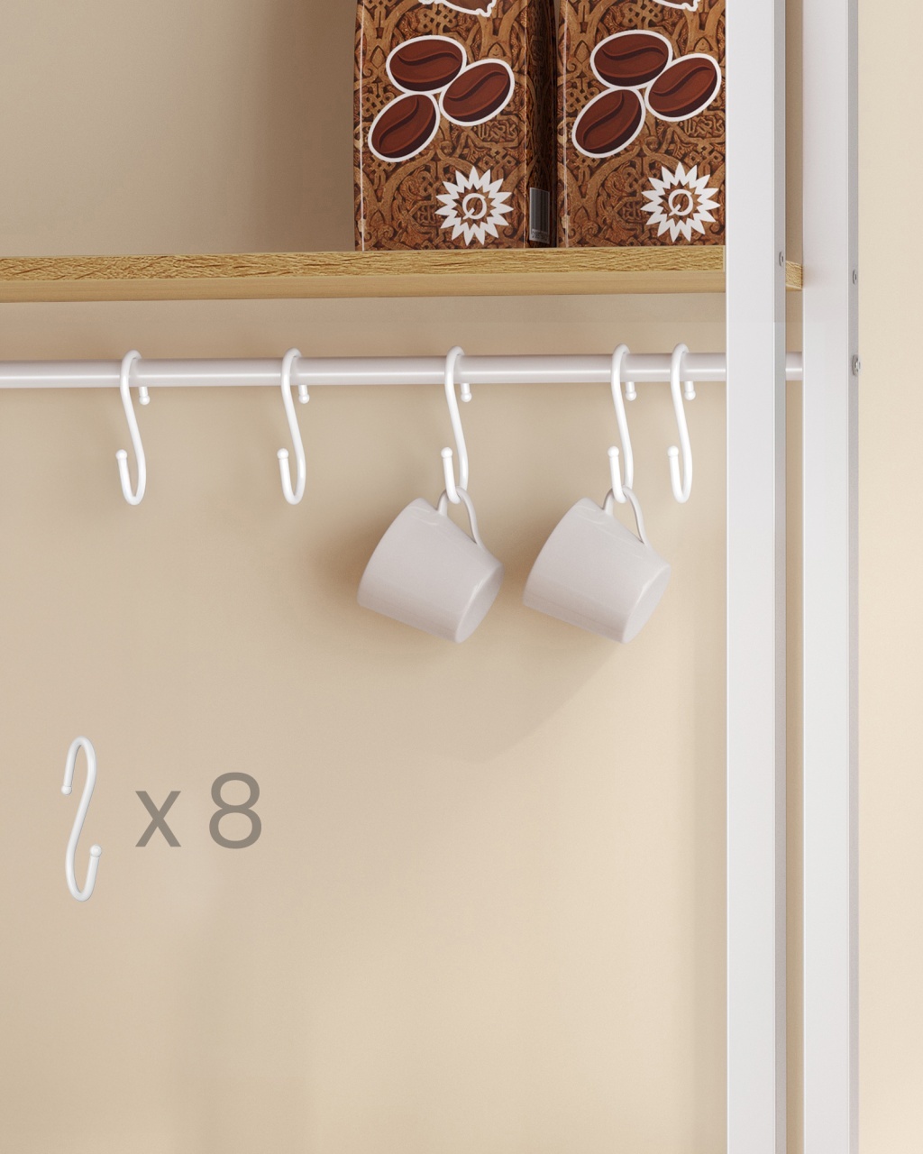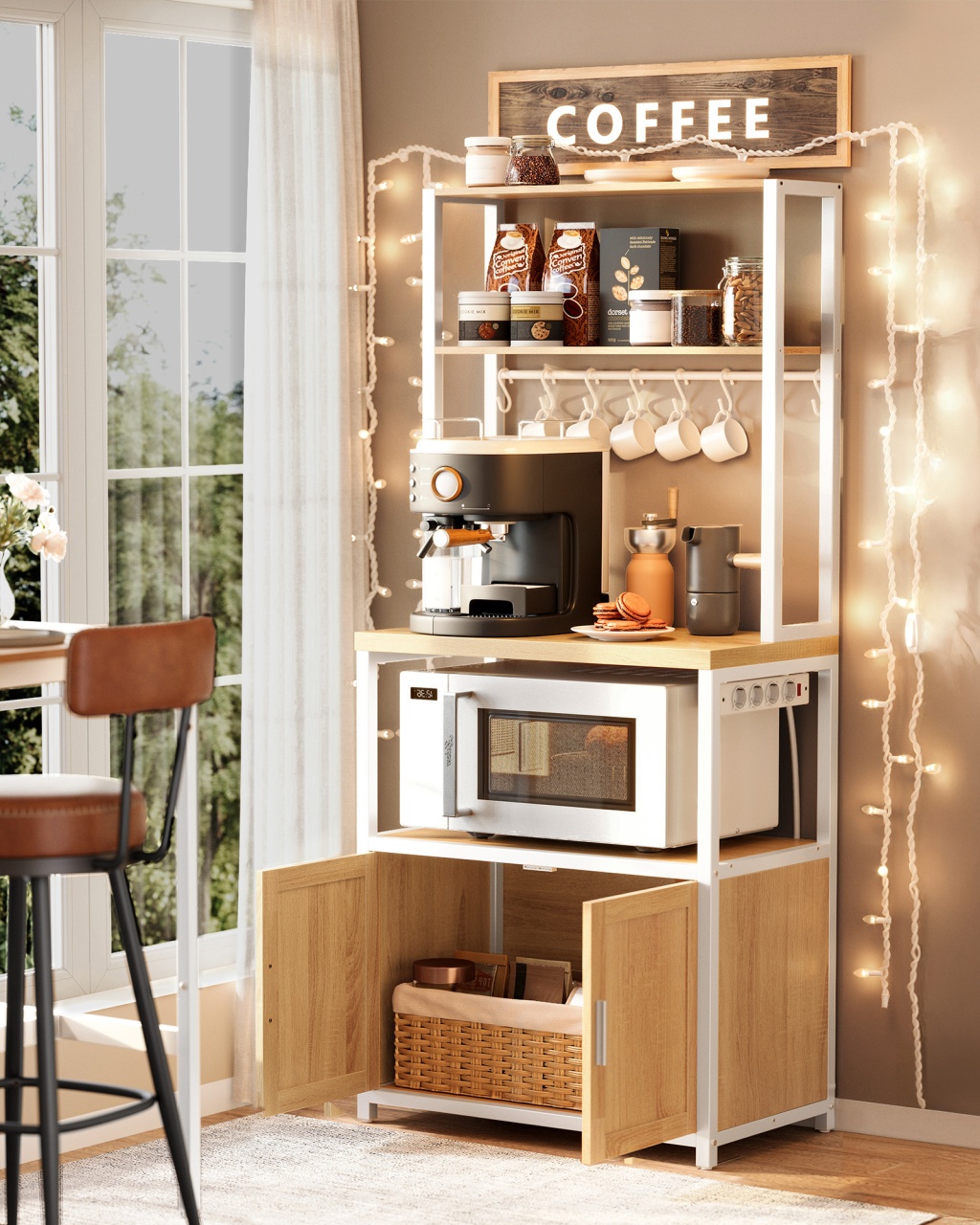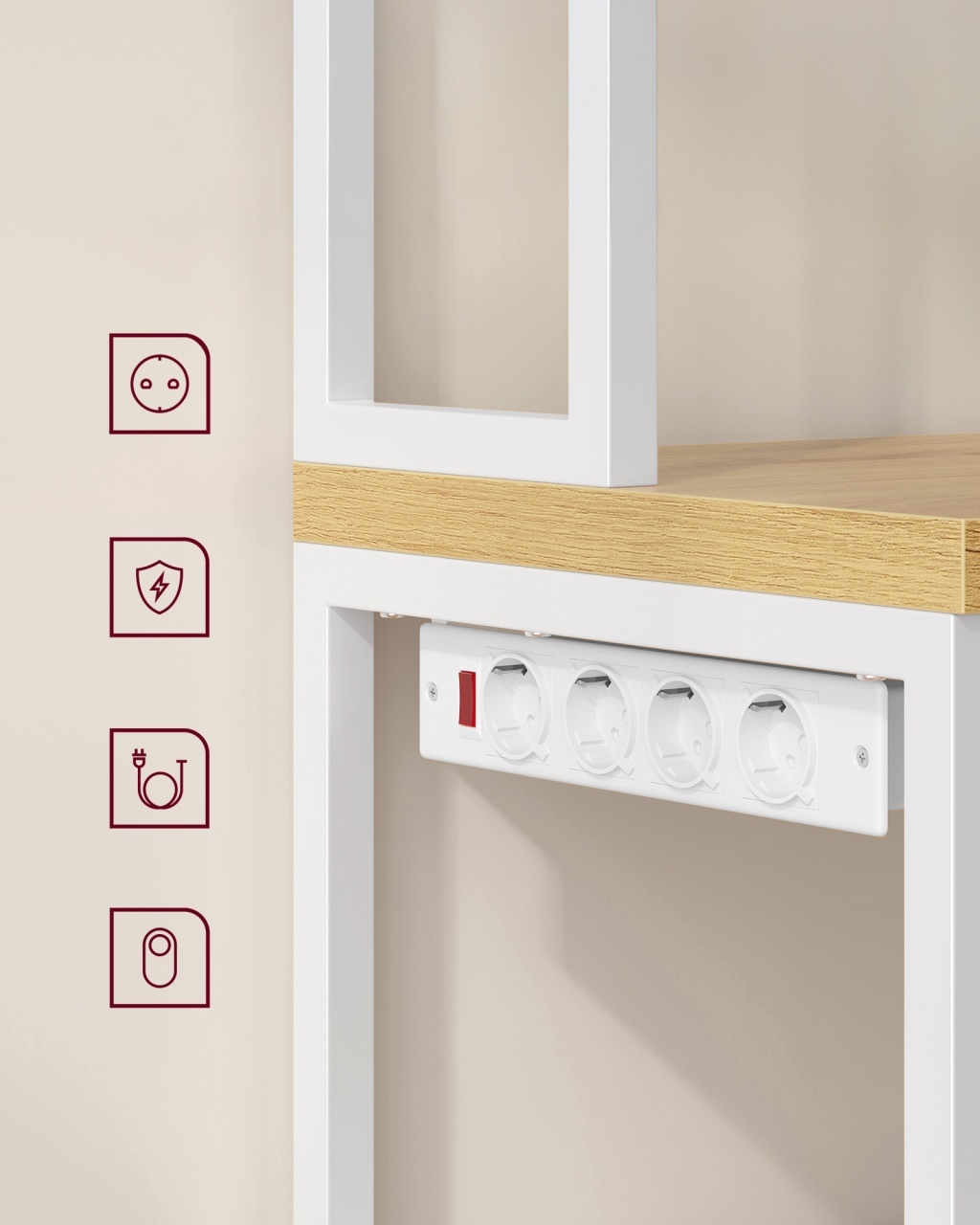 Raft de bucătărie Vasagle 60 x 40 x 170 cm — Organizare cu stil și bar de cafea integrat Design modern și materiale de calitate Acest raft pentru bucătărie combină o estetică rafinată cu accente practice, finisat în nuanța caldă de stejar auriu și un contraste elegant de alb , astfel încât să ofere o ambiantă premium fără a încărca vizual spațiul. Blatul de lucru, gros de 3 cm, transmite o senzație solidă la atingere și, datorită finisajului atent, adaugă durabilitate și o notă de eleganță în bucătăria ta. Combinația de PAL melaminat și oțel asigură un echilibru între rezistență și aspect contemporan, transformând piesa într-un punct focal estetic și practic. Funcționalitate și organizare Gândit pentru a optimiza fluxul din bucătărie, raftul oferă două polițe superioare ideale pentru condimente, opt cârlige pentru cești și un loc dedicat pentru aparatul de cafea, astfel încât fiecare element să aibă locul său și să fie la îndemână. Raftul include totodată un spațiu pentru cuptorul cu microunde și un dulap generos pentru friteuză sau veselă, ceea ce înseamnă că poți organiza , proteja și ascunde obiectele voluminoase fără compromis la estetică. De asemenea, blatul are o capacitate remarcabilă de încărcare (până la 45.4 kg ), iar alimentarea integrată cu 4 prize, întrerupător și protecție la suprasarcină permite utilizarea aparatelor în siguranță; aceasta se poate monta atât pe partea stângă, cât și pe cea dreaptă, adaptându-se cu ușurință planului tău de lucru. Montaj și întreținere Montajul este conceput pentru simplitate: părțile sunt numerotate și instrucțiunile detaliate te ghidează pas cu pas, astfel încât asamblarea devine rapidă și lipsită de stres. Picioarele reglabile compensează eventualele denivelări ale podelei, iar kit-ul anti-răsturnare oferă un plus de siguranță, garantând stabilitate pe termen lung; aceste elemente sporesc siguranța și stabilitatea produsului. Pentru întreținere, suprafețele din PAL se curăță ușor cu o cârpă moale și soluții delicate, iar părțile din oțel necesită doar o ștergere ocazională pentru a menține strălucirea și durabilitatea în timp. Comandă acum Adaugă un plus de organizare și rafinament în bucătăria ta — comandă acum raftul Vasagle și transformă-ți colțul de cafea într-un spațiu funcțional și elegant. Detalii tehnice complete Dimensiuni și greutate Dimensiuni produs: 60 x 40 x 170 cm Greutate produs: 18.12 kg Capacitate maximă: Blat: 45.4 kg; Raft superior: 10.4 kg; Raft inferior și dulap: 36.3 kg Materiale și caracteristici Material corp: PAL melaminat și oțel Culoare: Stejar auriu și alb Montaj și pachet Stare asamblare: Neasamblat Conținut pachet: 1 x Raft de bucătărie cu prize, 1 x Accesorii de montaj, 1 x Kit anti-răsturnare, 1 x Instrucțiuni Stil și origine Stil: Modern Destinație recomandată: Bucătărie