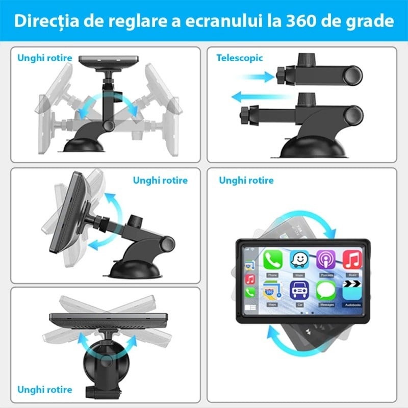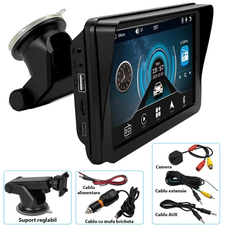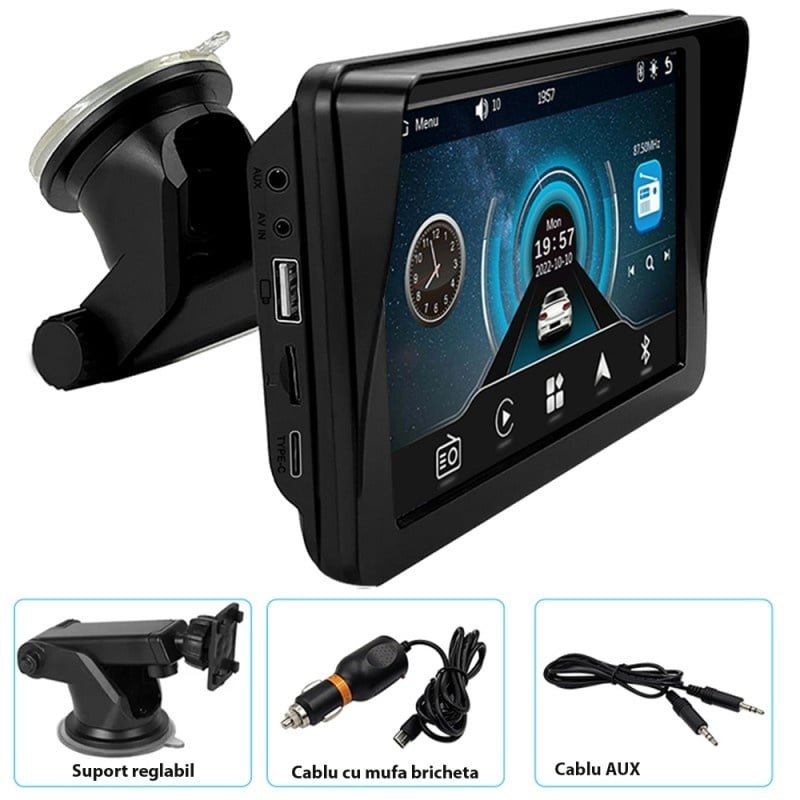 Sistemul Multimedia Techstar® Apple Carplay/Android 7094P pentru mașină , vine echipat cu un ecran tactil capacitiv de înaltă definiție de 7 inchi, acceptă redarea video 1080. Cu cel mai recent cip inteligent, atingerea va fi mai sensibilă și mai precisă, rularea va fi mai stabilă și mai lină. Ecranul tactil mare clar vă oferă control intuitiv asupra muzicii și funcțiilor smartphone-ului. Control ușor și experiență vizuală minunată. Wirelsee Apple Carplay/Android Auto: Acest stereo auto acceptă wireless Apple Carplay/Android Auto. Doar conectați-vă cu smartphone-ul prin bluetooth. Puteți gestiona fără fir navigarea, mesageria, apelurile telefonice, muzica, e-mailul, notificările și multe altele. Puteți chiar să conectați asistentul Google sau Siri al dispozitivului dvs. pentru a controla apelurile telefonice, a naviga, a reda muzică, totul astfel încât să vă puteți concentra pe drum, să vă păstrați mâinile libere și să conduceți în deplină siguranță! Bluetooth 5.0 face conducerea mai sigură: Cipul Bluetooth 5.0 cu specificații superioare încorporat face semnalul Bluetooth mai stabil. Sistemul hands-free Bluetooth și microfonul clar încorporat vă permit să efectuați apeluri fără mâini fără probleme, redarea muzicii și controlul vocal, făcând călătoria și conducerea mai sigure și mai convenabile. Conexiune AUX: Radioul nostru auto acceptă cablul AUX pentru a se conecta la intrarea audio auxiliară a mașinii pentru a transmite vocea la radioul original al mașinii. Puteți asculta cu precizie radio și televiziune, știri, muzică, informații de călătorie în orice moment și vă puteți bucura de timpul de conducere. Alte funcții: 7 inch 1080P Full HD Touch Screen Radio Auto MP5 Player Suport USB/TF Card/AUX, Music Player, Video Player. Suportă funcția de legătură oglindă, folosește conexiunea wireless pentru a sincroniza smartphone-ul cu ecranul tactil, bucură-te de hărți, filme și multe altele! Nu numai că vă puteți bucura de diverse funcții, dar vă puteți și încărca telefonul. Gama de tensiune este de la 9V la 26V, potrivit pentru toate modelele, inclusiv camioane, autobuze etc. Serviciul Clienți: Sistemele stereo auto sunt compatibile doar cu tensiunea DC de 12 V auto. Se recomandă să utilizați o conexiune prin cablu la carplay atunci când utilizați funcția carplay, care poate face navigarea mai lină, mai receptivă și să evite pierderea intersecțiilor importante. Oferim servicii excelente pentru clienți și o echipă tehnică profesionistă poate rezolva problemele produselor. Dacă aveți întrebări, vă rugăm să nu ezitați să ne contactați și vă vom ajuta să rezolvați problema. Specificatii: Suportă conexiuni wireless și prin cablu: Android auto și Apple CarPlay (Este recomandat să utilizați o conexiune prin cablu la carplay atunci când utilizați funcția carplay, aceasta vă poate face imaginea mai fluidă și mai receptivă atunci când utilizați navigarea, puteți evita pierderea intersecțiilor importante.) Suport comenzi vocale: control vocal Apple Siri și Android și Google. Redare multimedia: USB + AUX + card TF Porturi multiple de intrare Tensiune adaptivă: 9V până la 26V Formate video acceptate: 3GP/ASF/AVI/DivX/mkv/MOV/MP4/MPG/TS/VOB/WEBM/M4V/FLV Formate audio acceptate: MP3/MP2/WAV/AAC/AMR/M4A/OGG/APE (fără pierderi)/FLAC (fără pierderi) Tip de instalare: Dezasamblare ușoară, tablou de bord sau parbriz Modele de mașini aplicabile: potrivite pentru toate modelele, inclusiv camioane, autobuze și așa mai departe. Produse universale indiferent de model Versiunea telefonului este actualizată în mod constant și aparatul trebuie actualizat în consecință. Dacă întâmpinați nereguli în timpul utilizării, puteți solicita asistență vânzătorului și vă vom ajuta să actualizați noua versiune. Mod de utilizare: 1. Nu vă puteți conecta la Bluetooth? Vă rugăm să ștergeți înregistrările bluetooth de pe telefonul mobil și pe aparat și reacordați conexiunea. Când conectați un nou bluetooth, înregistrarea anterioară trebuie ștearsă. 2. Cum se conectează Bluetooth-ul altor telefoane mobile? Vă rugăm să ștergeți înregistrările bluetooth de pe telefonul mobil și pe aparat și reacordați conexiunea. 3. Se aude muzica și nu se aude sunetul? Vă rugăm să verificați dacă redă FM, doar opriți FM. 4. Ecranul nu poate fi pornit? Nu puteți începe? Dacă întâmpinați o situație în care nu se pornește sau nu pornește, asigurați-vă că adaptorul este pornit. 5. Ecranul tactil nu este ușor de utilizat? Dacă întâmpinați astfel de probleme, este recomandat să încercați funcția de resetare din fabrică și să salvați datele înainte de utilizare. 6. Decalaj navigare GPS? Este recomandat să utilizați o conexiune prin cablu la carplay, care vă permite să utilizați navigarea mai ușor și mai receptiv și să evitați ratarea intersecțiilor importante. Pachetul include: 1 x ecran de afișare 1 x Suport 1 x cadru Blackout 1 x plasture fix pentru ham 1 x cablu audio AUX 1 x cablu de alimentare 1 x Dasket fix 1 x Manual de utilizare