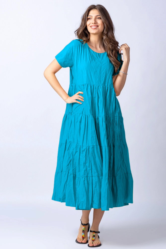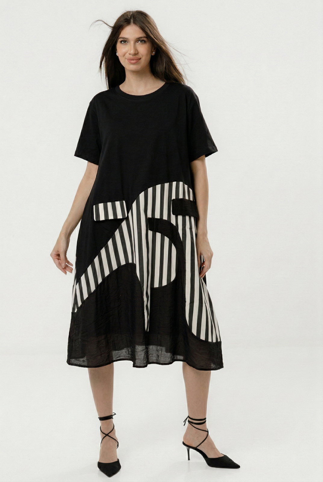 Decolteu rotund Maneca 3 4 Este taiata in talie Material: 95% bumbac, 5% elastan Descriere dimensiuni: S M: umeri 39 cm, bust 90 cm, talie 80 cm, lungime 107 cm L XL: umeri 41 cm, bust 94 cm, talie 84 cm, lungime 110 cm Modelul nostru are inaltime 180 cm, umeri 38 cm, bust 82 cm, talie 62 cm, sold 92 cm si poarta in imagine masura S M Nuantele pot varia usor in realitate, in functie de lumina si setarile fiecarui ecran.