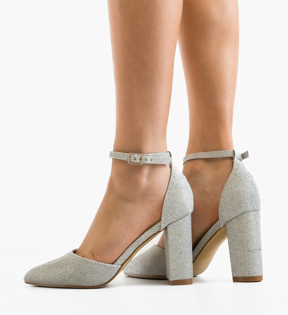 Pantofi dama cu toc Coral Argintii