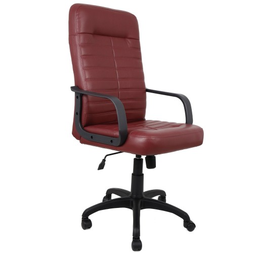 Scaun directorial din imitatie de piele, cu brate si stea din plastic. Structura este compusa din mecanismul oscilant, cilindrul pneumatic si baza stea. Scaunul se livreaza demontat. Sezutul si spatarul scaunului sunt separate si se fixeaza cu ajutorul bratelor. Este un scaun bine inchegat si echilibrat din clasa economica. Caracteristici: Greutate admisa: 110 kg Dimensiuni: Inaltime totala: 116 cm Inaltime sezut: 47 cm Latime totala: 62 cm Latime sezut: 50 cm Adancimea totala: 76 cm Adancime sezut: 50 cm