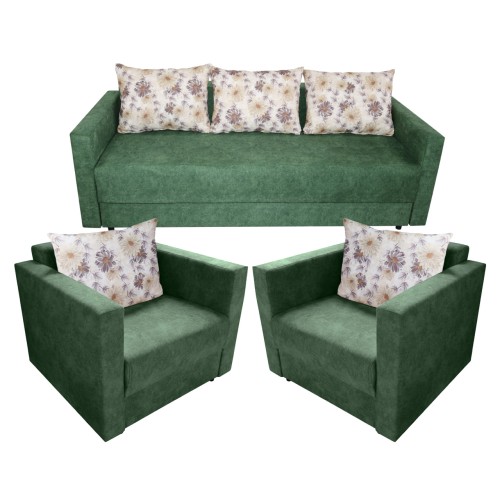 Setul 3+1+1 Croma este alcatuit dintr-o canapea cu 3 locuri si 2 fotolii fixe. Canapeaua Croma este o canapea moderna conceputa pentru un stil de viata activ fiind foarte usor de extins si de strans. Canapeaua Croma cu 3 locuri are brate inguste pentru o incadrare cat mai eficienta in camera pastrand suprafata generoasa de dormit atunci cand este extinsa. Canapeaua Croma este extensibila putand fi utilizata zilnic atat ca si canapea pentru petrecerea timpului liber cat si ca un pat generos pe timpul noptii. Suprafata de dormit este 140 * 190 cm. Canapeaua Croma are saltele cu plasa de arcuri (tip Relaxa) si burete de densitate mare pentru o rezistenta sporita in timp, iar datorita suprafetei plane care se formeaza atunci cand se extinde asigura un somn odihnitor pe timpul noptii. Atat canapeaua cat si pernele sunt tapitate cu stofa. Canapeaua Croma are o lada de depozitare generoasa foarte practica atat pentru lenjeria de pat, cat si pentru diverse obiecte pe care le folositi rar. Sezutul in varianta stransa are o latime generoasa de 70 cm si poate fi folosit de o persoana in timpul zilei pentru un pui de somn fara a mai fi nevoie sa extindeti canapeaua. Canapeaua Croma are 3 perne pufoase foarte utile pentru o sedere cat mai confortabila pe canapea, dar si pentru o pata de culoare. Canapeaua Croma este foarte usor de montat avand elemente de cuplare rapide. Canapeaua Croma este prevazuta cu un peretar prins intre brate care ramane la perete atunci cand canapeaua este extinsa si este folosita pentru dormit. Peretarul protejeaza peretele si asigura un confort sporit pentru persoana care va dormi la perete. Dimensiuni canapea Croma stransa: Lungime: 2110 mm Adancime: 990 mm Inaltime: 710 mm Suprafata de dormitor canapea Croma: 1400 x 1900 mm Fotoliul Croma este un fotoliu modern conceput pentru un stil de viata activ. Fotoliul Croma are saltea cu plasa de arcuri (tip Relaxa) si burete de densitate mare pentru o rezistenta sporita in timp. Atat fotoliul cat si perna sunt tapitate cu stofa. Fotoliul Croma are o perna pufoasa foarte utila pentru o sedere cat mai confortabila pe fotoliu, dar si pentru o pata de culoare. Fotoliul Croma este foarte usor de montat avand elemente de cuplare rapide. Dimensiuni fotoliu Croma: Lungime: 860 mm Adancime: 780 mm Inaltime: 700 mm