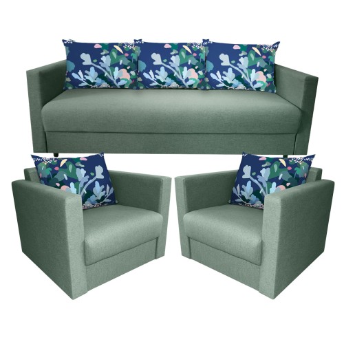 Setul 3+1+1 Croma este alcatuit dintr-o canapea cu 3 locuri si 2 fotolii fixe. Canapeaua Croma este o canapea moderna conceputa pentru un stil de viata activ fiind foarte usor de extins si de strans. Canapeaua Croma cu 3 locuri are brate inguste pentru o incadrare cat mai eficienta in camera pastrand suprafata generoasa de dormit atunci cand este extinsa. Canapeaua Croma este extensibila putand fi utilizata zilnic atat ca si canapea pentru petrecerea timpului liber cat si ca un pat generos pe timpul noptii. Suprafata de dormit este 140 * 190 cm. Canapeaua Croma are saltele cu plasa de arcuri (tip Relaxa) si burete de densitate mare pentru o rezistenta sporita in timp, iar datorita suprafetei plane care se formeaza atunci cand se extinde asigura un somn odihnitor pe timpul noptii. Atat canapeaua cat si pernele sunt tapitate cu stofa. Canapeaua Croma are o lada de depozitare generoasa foarte practica atat pentru lenjeria de pat, cat si pentru diverse obiecte pe care le folositi rar. Sezutul in varianta stransa are o latime generoasa de 70 cm si poate fi folosit de o persoana in timpul zilei pentru un pui de somn fara a mai fi nevoie sa extindeti canapeaua. Canapeaua Croma are 3 perne pufoase foarte utile pentru o sedere cat mai confortabila pe canapea, dar si pentru o pata de culoare. Canapeaua Croma este foarte usor de montat avand elemente de cuplare rapide. Canapeaua Croma este prevazuta cu un peretar prins intre brate care ramane la perete atunci cand canapeaua este extinsa si este folosita pentru dormit. Peretarul protejeaza peretele si asigura un confort sporit pentru persoana care va dormi la perete. Dimensiuni canapea Croma stransa: Lungime: 2110 mm Adancime: 990 mm Inaltime: 710 mm Suprafata de dormitor canapea Croma: 1400 x 1900 mm Fotoliul Croma este un fotoliu modern conceput pentru un stil de viata activ. Fotoliul Croma are saltea cu plasa de arcuri (tip Relaxa) si burete de densitate mare pentru o rezistenta sporita in timp. Atat fotoliul cat si perna sunt tapitate cu stofa. Fotoliul Croma are o perna pufoasa foarte utila pentru o sedere cat mai confortabila pe fotoliu, dar si pentru o pata de culoare. Fotoliul Croma este foarte usor de montat avand elemente de cuplare rapide. Dimensiuni fotoliu Croma: Lungime: 860 mm Adancime: 780 mm Inaltime: 700 mm