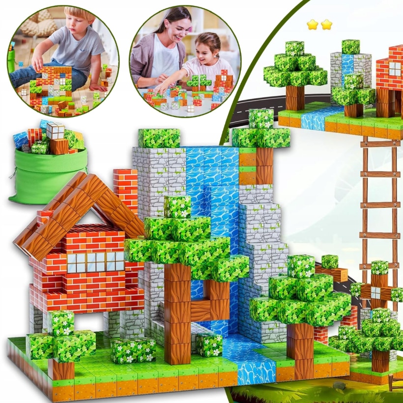 Set 75 cuburi magnetice Mine Craft Blocuri de constructie tematice: inclusiv elemente clasice precum ondulatii ale apei, iarba, busteni, caramizi de piatra, frunze, ferestre de sticla etc., pentru a restaura lumea in stil pixel din jocul Minecraft. Sistem magnetic cu poli N/S: Toate cele sase laturi pot fi adsorbite, facilitand construirea de scene tridimensionale, cum ar fi castele, paduri, labirinturi etc. Structura este stabila si nu se prabuseste usor. Design sigur, special conceput pentru maini mici. Particule de 2 cm: special concepute pentru copiii cu varsta cuprinsa intre 3 si 10 ani, anti-inghitire si usor de apucat, cu colturi rotunjite care nu vor rani mainile. Material ABS ecologic: A trecut certificarea UE EN71, netoxic si inodor, rezistent la caderi si compresie. Artefactul educatiei STEM Gandire spatiala: intelegerea structurii geometrice si a echilibrului gravitational Lucru in echipa: Mai multe persoane lucreaza impreuna pentru a finaliza cladiri complexe Rationament logic: planificarea alocarii resurselor si etapele de constructie Adaptare didactica: Zona de constructii pentru gradinita/materiale didactice pentru stiinte in scoala primara. Provocare pentru un singur jucator: Construieste o cladire tematica desemnata intr-un timp limitat Interactiunea parinte-copil: Parintii pun intrebari, iar copiii recreeaza scenele Competitie de grup: Vedeti a cui creativitate este mai uimitoare
