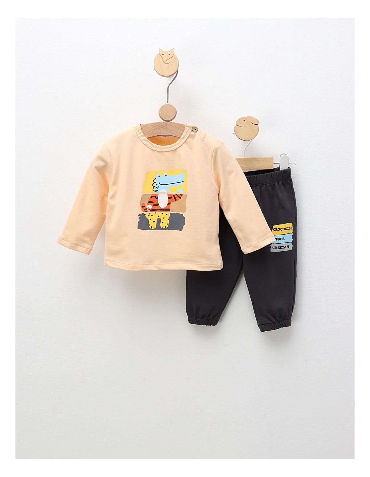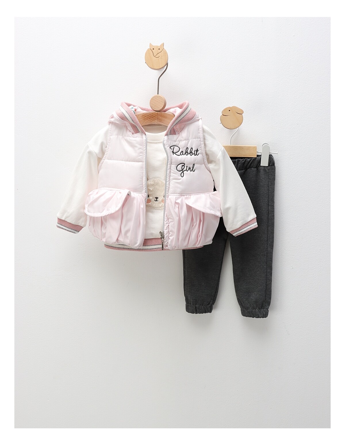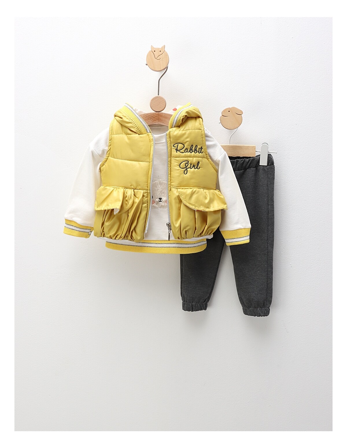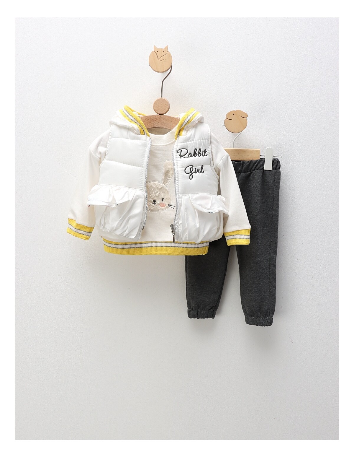 Imaginați-vă razele jucăușe ale soarelui de vară, îmbrățișând cu căldură și lumină fiecare moment al zilei. Setul nostru de vară pentru fetițe este o celebrare a acestor zile însorite, oferind o combinație perfectă de confort și stil. Tricoul alb cu mânecă scurtă este esența simplității elegante, o pânză curată pe care se pot picta amintiri colorate de vară. Materialul său de 100% bumbac promite o purtare lejeră și respirabilă, ideală pentru joaca sub soarele generos. Pantalonul din pânză, cu un model drept și versatil, invită la aventură și explorare, fiind adaptabil oricărei activități prin cordonul ajustabil în talie. Acest detaliu nu doar că asigură o potrivire perfectă, dar adaugă și o notă de stil și personalitate ținutei. Materialul de 100% bumbac menține confortul chiar și în cele mai calde zile de vară, făcând din acest set alegerea ideală pentru zilele pline de distracție la plajă, în parc sau în orice aventură estivală.