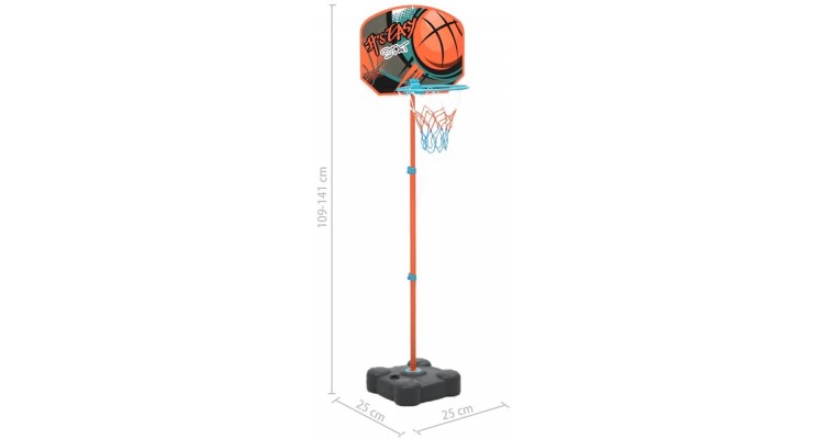 Acest set de baschet le ofera copiilor o activitate sanatoasa, in timp ce ii ajuta sa isi dezvolte coordonarea mana-ochi prin joc. Setul are inclus un inel din metal, plasa in trei culori, o minge care se poate umfla si o pompa ca sa aveti tot ce e nevoie pentru a incepe joaca. Inaltimea cosului poate fi ajustata in functie de inaltimea copilului dvs. Baza cosului va sta ferm odata ce va fi umpluta cu apa sau nisip. Datorita faptului ca nu este greu, cosul poate fi mutat cu usurinta. Culoare: Rosu, alb, verde si negru Material: PE, fier Inaltime: 109-141 cm Dimensiunile panoului: 40 x 30.5 cm (lungime x latime) Diametrul minge: 14 cm Inel, plasa in 3 culori, pompa si minge Baza se poate umple cu apa sau nisip pentru stabilitate Necesita asamblare: da Atentie! Piese mici si plasa! Risc de inec si strangulare! Atentie! Necesita sa fie asamblat de catre un adult! Nu este potrivit pentru copii sub 36 de luni! Joaca se va desfasura sub atenta supraveghere a unui adult.