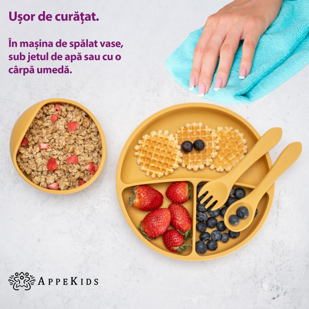 Set Diversificare, AppeKids, 100 Silicon, Basic - 4 piese - HoneynbspSuntem parinti si intotdeauna ne-am dorit tot ceea ce este mai bun pentru copiii nostri si ai tai.nbspStim ca toti parintii sunt oc