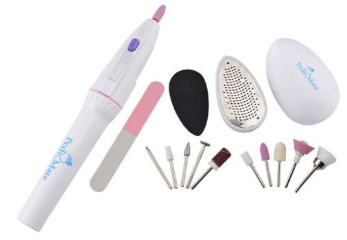 Descoperiți secretul unei manichiuri și pedichiuri de invidiat cu setul nostru complet Pedi Mate, ce include 18 accesorii esențiale, conceput pentru a vă oferi o experiență de salon în confortul propriei case. Fie că sunteți un profesionist înfrumusețare sau cineva care își dorește doar să se răsfețe, acest kit este tot ce aveți nevoie pentru a menține un aspect îngrijit și elegant al unghiilor dumneavoastră. Cu o gamă variată de instrumente de precizie, setul Pedi Mate transformă îngrijirea unghiilor într-un proces simplu și eficient. De la pile delicate, concepute pentru a netezi suprafața unghiei, la dispozitive specializate pentru polișare și forme specifice pentru îngrijirea cuticulelor, fiecare accesoriu a fost meticulos selectat pentru a răspunde nevoilor diverse ale îngrijirii unghiilor. Set manichiura/pedichiura Pedi Mate, 18 piese. Aveti la dispozitie 2 pile ergonomice special create pentru a indeparta pielea moarta, un aparat electric, 10 capete pentru un netezire si finisare a unghiilor, o pila pentru unghii si inca 4 accesorii ce pot fi folosite pentru netezirea ulterioara a calcaielor si a restului labei piciorului. Avantaje: Piele uscata si crapata pe calcaie; Pielea aspra si bataturile de pe degetul mare si partea laterala a talpii; Unghii cu forme neregulate, cuticule sau asperitati. Pachetul contine: Pedi Mate; 2 x pile ergonomice Pedi Mate pentru ingrijirea calcaielor; 1 x pila lunga pentru ingrijirea unghiilor; 10 accesorii pentru aparatul Pedi Mate; 4 x accesorii cu suprafata usor abraziva pentru netezirea calcaielor.