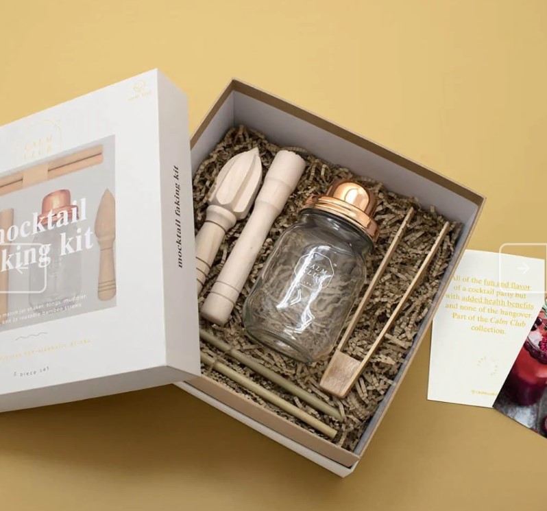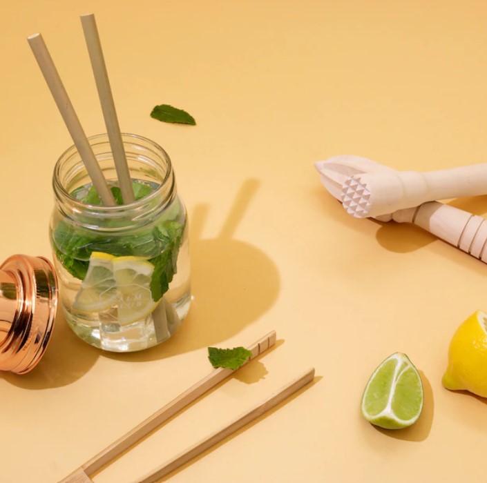 Kit de preparare a cocktailurilor fara alcool care ofera toata distractia si aroma unui cocktail, dar cu beneficii suplimentare pentru sanatate si minus mahmureala.Contine:- Paie de bambus x 2- Clesti de bambus- Shaker- Storcator- Pistil- Brosura de retete pentru mocktailMateriale: sticla, otel inoxidabil, lemn de bambus si theaceae