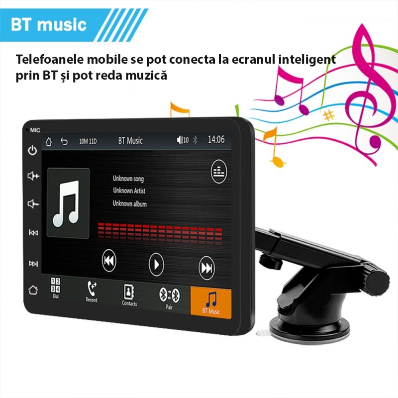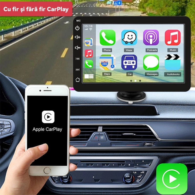 Sistemul Multimedia Techstar® Apple Carplay/Android 7095P pentru mașină , vine echipat cu un ecran tactil capacitiv de înaltă definiție de 7 inchi, acceptă redarea video 1080. Cu cel mai recent cip inteligent, atingerea va fi mai sensibilă și mai precisă, rularea va fi mai stabilă și mai lină. Ecranul tactil mare clar vă oferă control intuitiv asupra muzicii și funcțiilor smartphone-ului. Control ușor și experiență vizuală minunată. Wirelsee Apple Carplay/Android Auto: Acest stereo auto acceptă wireless Apple Carplay/Android Auto. Doar conectați-vă cu smartphone-ul prin bluetooth. Puteți gestiona fără fir navigarea, mesageria, apelurile telefonice, muzica, e-mailul, notificările și multe altele. Puteți chiar să conectați asistentul Google sau Siri al dispozitivului dvs. pentru a controla apelurile telefonice, a naviga, a reda muzică, totul astfel încât să vă puteți concentra pe drum, să vă păstrați mâinile libere și să conduceți în deplină siguranță! Bluetooth 5.0 face conducerea mai sigură: Cipul Bluetooth 5.0 cu specificații superioare încorporat face semnalul Bluetooth mai stabil. Sistemul hands-free Bluetooth și microfonul clar încorporat vă permit să efectuați apeluri fără mâini fără probleme, redarea muzicii și controlul vocal, făcând călătoria și conducerea mai sigure și mai convenabile. Conexiune AUX: Radioul nostru auto acceptă cablul AUX pentru a se conecta la intrarea audio auxiliară a mașinii pentru a transmite vocea la radioul original al mașinii. Puteți asculta cu precizie radio și televiziune, știri, muzică, informații de călătorie în orice moment și vă puteți bucura de timpul de conducere. Alte funcții: 7 inch 1080P Full HD Touch Screen Radio Auto MP5 Player Suport USB/TF Card/AUX, Music Player, Video Player. Suportă funcția de legătură oglindă, folosește conexiunea wireless pentru a sincroniza smartphone-ul cu ecranul tactil, bucură-te de hărți, filme și multe altele! Nu numai că vă puteți bucura de diverse funcții, dar vă puteți și încărca telefonul. Gama de tensiune este de la 9V la 26V, potrivit pentru toate modelele, inclusiv camioane, autobuze etc. Serviciul Clienți: Sistemele stereo auto sunt compatibile doar cu tensiunea DC de 12 V auto. Se recomandă să utilizați o conexiune prin cablu la carplay atunci când utilizați funcția carplay, care poate face navigarea mai lină, mai receptivă și să evite pierderea intersecțiilor importante. Oferim servicii excelente pentru clienți și o echipă tehnică profesionistă poate rezolva problemele produselor. Dacă aveți întrebări, vă rugăm să nu ezitați să ne contactați și vă vom ajuta să rezolvați problema. Specificatii: Suportă conexiuni wireless și prin cablu: Android auto și Apple CarPlay (Este recomandat să utilizați o conexiune prin cablu la carplay atunci când utilizați funcția carplay, aceasta vă poate face imaginea mai fluidă și mai receptivă atunci când utilizați navigarea, puteți evita pierderea intersecțiilor importante.) Suport comenzi vocale: control vocal Apple Siri și Android și Google. Redare multimedia: USB + AUX + card TF Porturi multiple de intrare Tensiune adaptivă: 9V până la 26V Formate video acceptate: 3GP/ASF/AVI/DivX/mkv/MOV/MP4/MPG/TS/VOB/WEBM/M4V/FLV Formate audio acceptate: MP3/MP2/WAV/AAC/AMR/M4A/OGG/APE (fără pierderi)/FLAC (fără pierderi) Tip de instalare: Dezasamblare ușoară, tablou de bord sau parbriz Modele de mașini aplicabile: potrivite pentru toate modelele, inclusiv camioane, autobuze și așa mai departe. Produse universale indiferent de model Versiunea telefonului este actualizată în mod constant și aparatul trebuie actualizat în consecință. Dacă întâmpinați nereguli în timpul utilizării, puteți solicita asistență vânzătorului și vă vom ajuta să actualizați noua versiune. Mod de utilizare: 1. Nu vă puteți conecta la Bluetooth? Vă rugăm să ștergeți înregistrările bluetooth de pe telefonul mobil și pe aparat și reacordați conexiunea. Când conectați un nou bluetooth, înregistrarea anterioară trebuie ștearsă. 2. Cum se conectează Bluetooth-ul altor telefoane mobile? Vă rugăm să ștergeți înregistrările bluetooth de pe telefonul mobil și pe aparat și reacordați conexiunea. 3. Se aude muzica și nu se aude sunetul? Vă rugăm să verificați dacă redă FM, doar opriți FM. 4. Ecranul nu poate fi pornit? Nu puteți începe? Dacă întâmpinați o situație în care nu se pornește sau nu pornește, asigurați-vă că adaptorul este pornit. 5. Ecranul tactil nu este ușor de utilizat? Dacă întâmpinați astfel de probleme, este recomandat să încercați funcția de resetare din fabrică și să salvați datele înainte de utilizare. 6. Decalaj navigare GPS? Este recomandat să utilizați o conexiune prin cablu la carplay, care vă permite să utilizați navigarea mai ușor și mai receptiv și să evitați ratarea intersecțiilor importante. Pachetul include: 1 x ecran de afișare 1 x Suport 1 x cadru Blackout 1 x plasture fix pentru ham 1 x cablu audio AUX 1 x cablu de alimentare 1 x Dasket fix 1 x Manual de utilizare