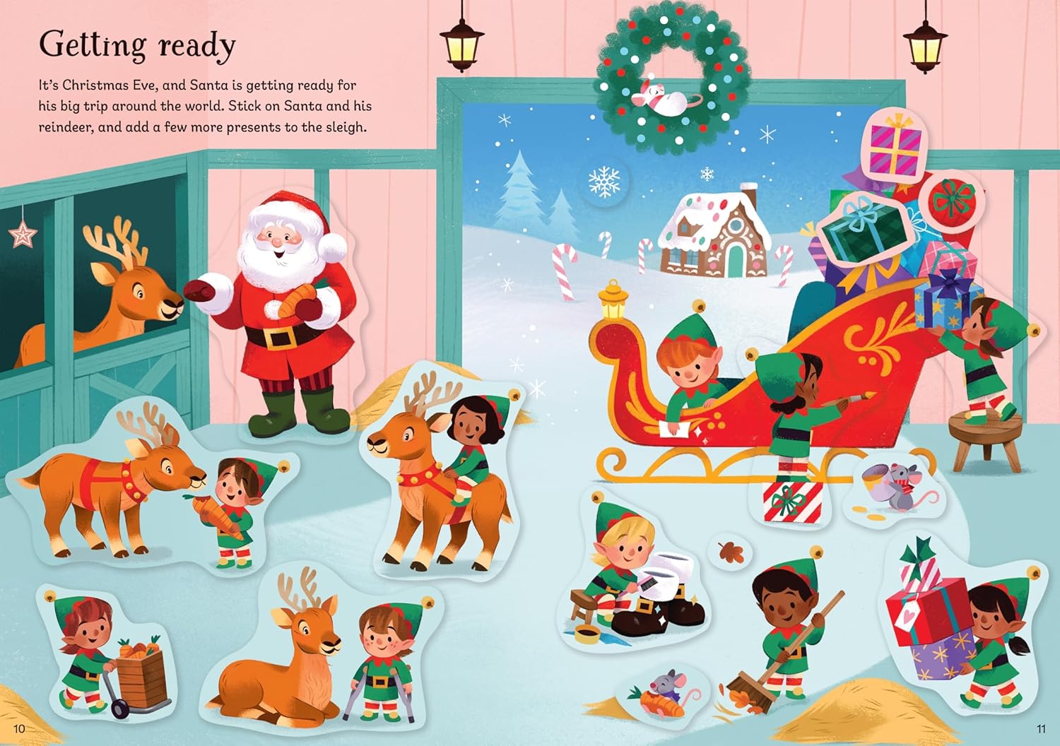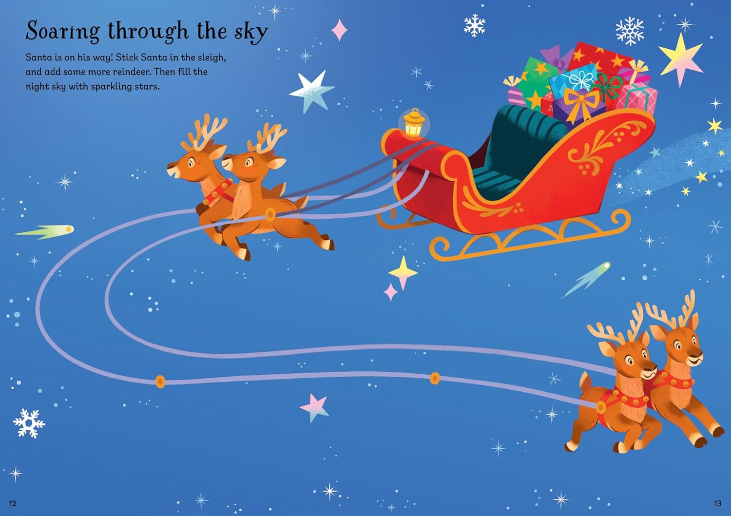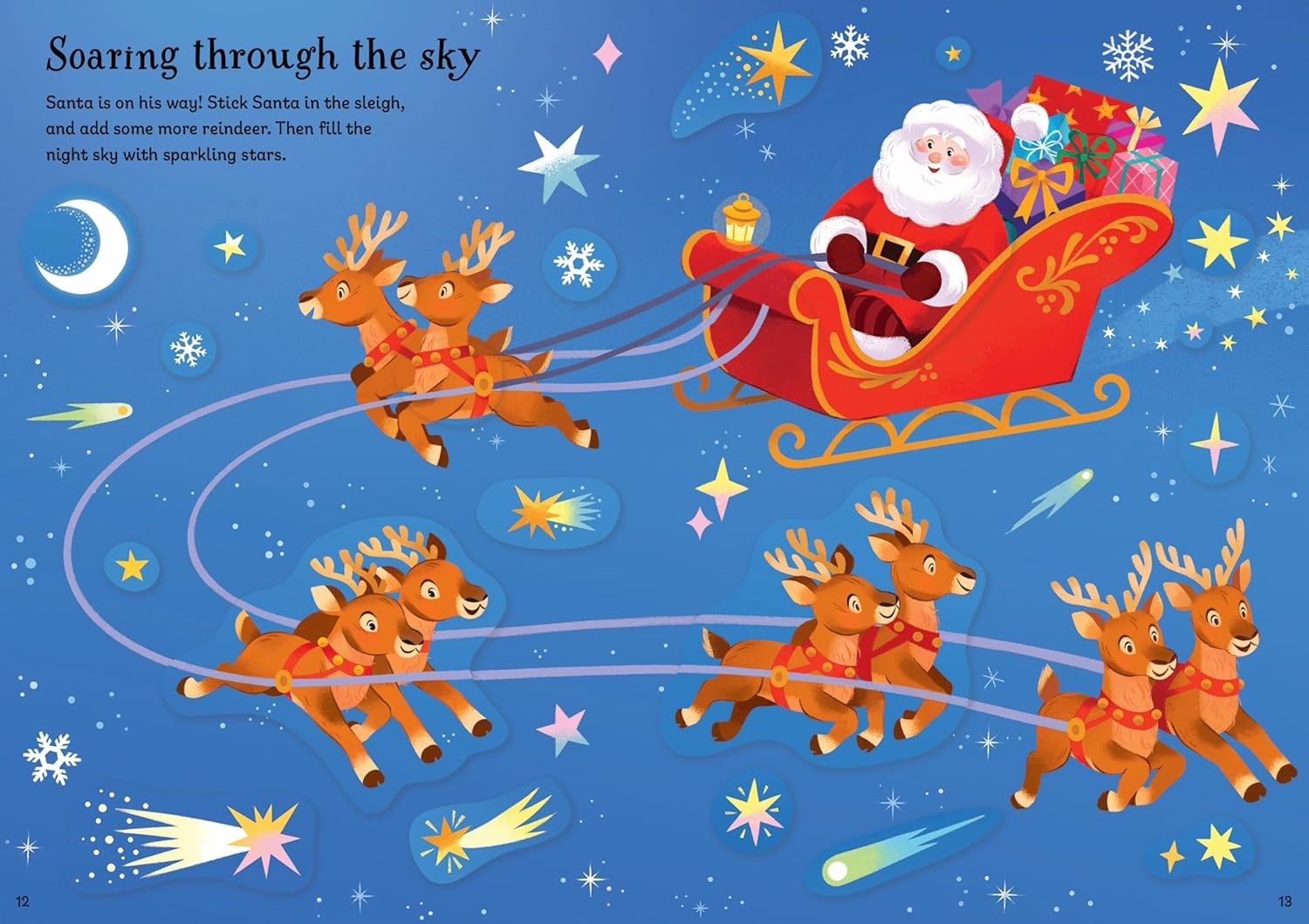 Join Santa as he checks his list, packs his sleigh and flies all around the world with his trusty reindeer. Add a little magic to the enchanting scenes with masses of sparkly stickers, and help Santa and his elves prepare for the big night.