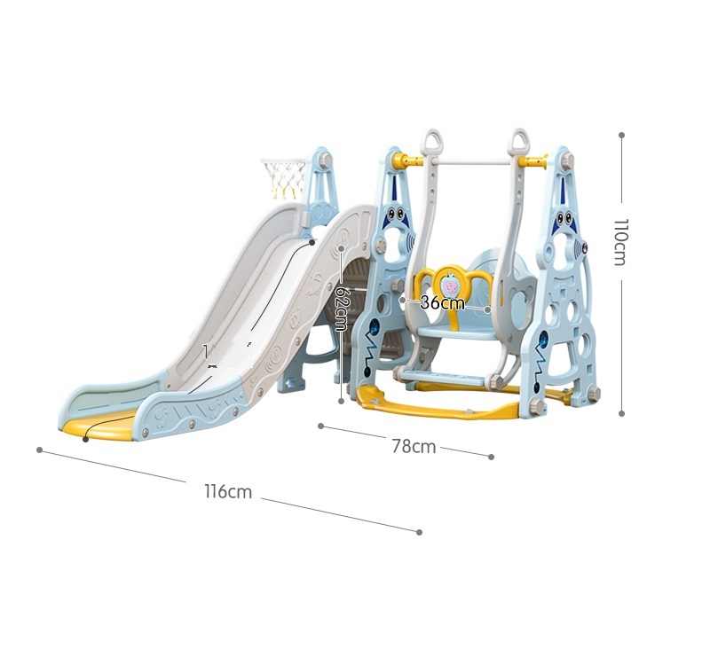Spatiu de joaca 3in1 Nichiduta Garden Astronaut Blue cu tobogan, leagan cu bara de protectie detasabila, jucarie muzicala, cos de baschet si minge inclusa