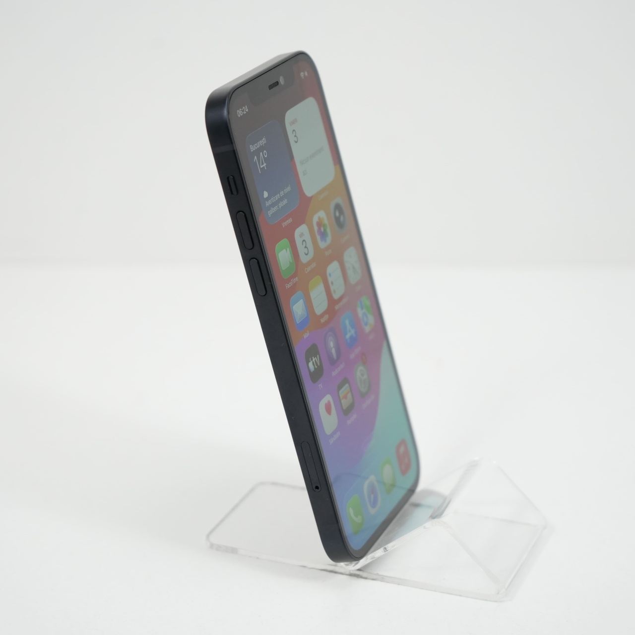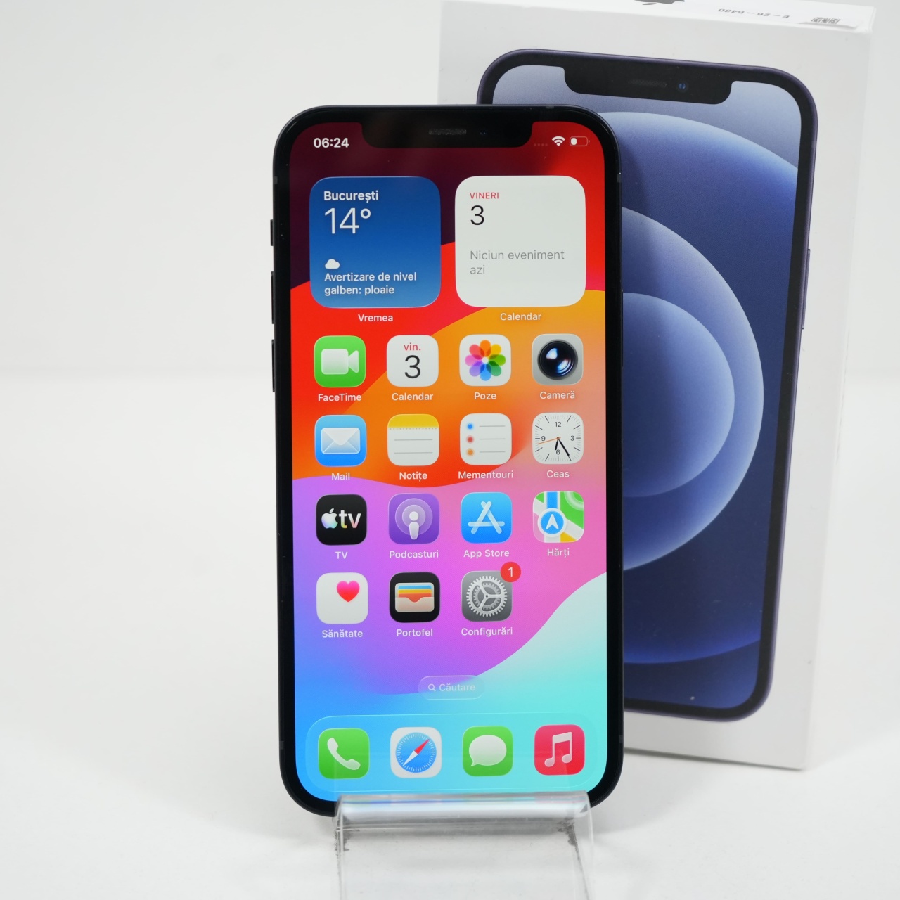 Ecran: 6.1 Procesor: Apple A14 Bionic Memorie RAM: 4GG Memorie interna: 128GB Camera foto: Principala 12 MPx, Frontala 12 MPx Stare retea: Liber de rețea