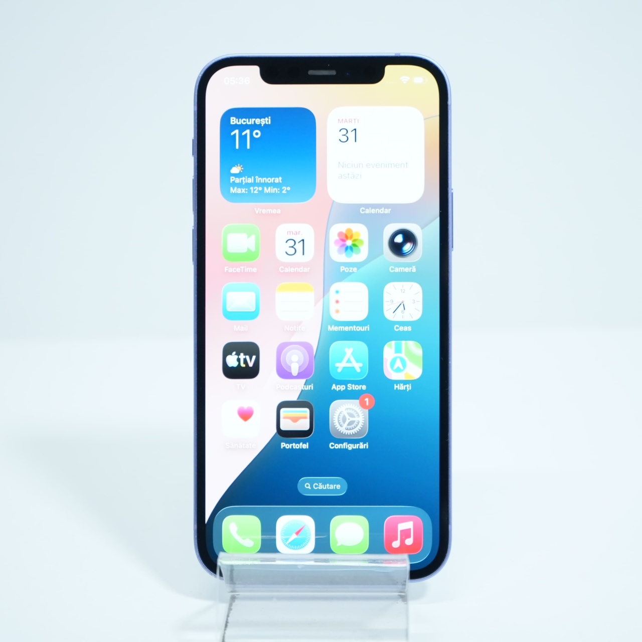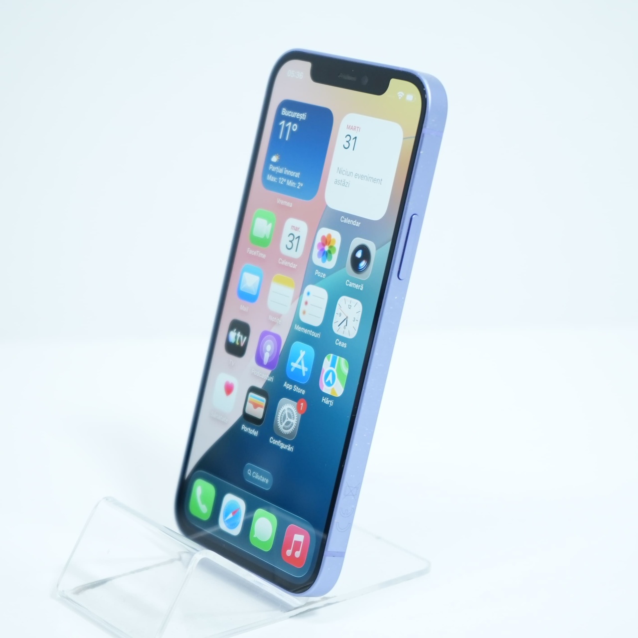 Ecran: 6.1 Procesor: Apple A14 Bionic Memorie RAM: 4GB Memorie interna: 128GB Camera foto: Principala 12 MPx, Frontala 12 MPx Stare retea: Liber de rețea