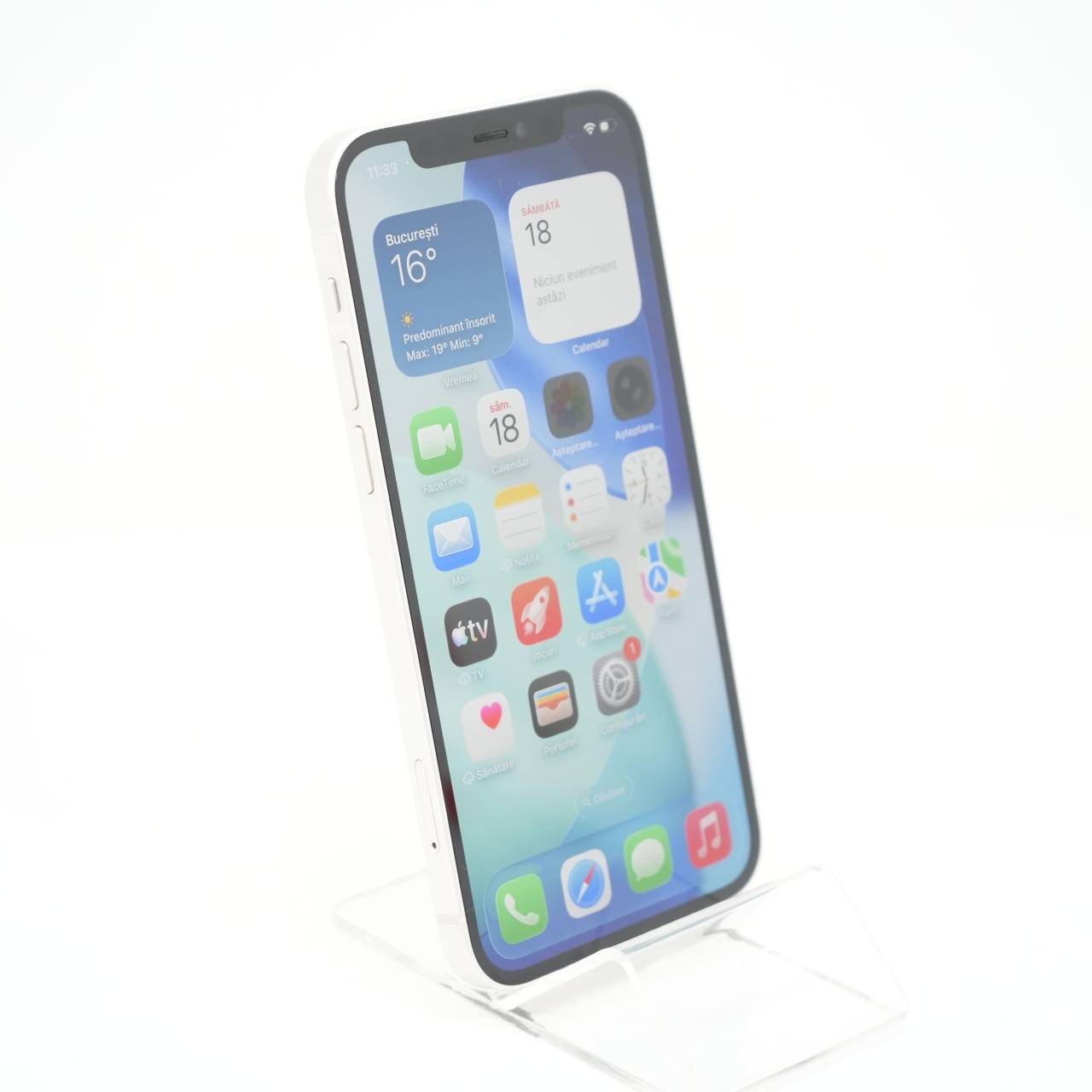 Ecran: 6.1 Procesor: Apple A14 Bionic Memorie RAM: 4 GB Memorie interna: 64GB Camera foto: Principala 12 MPx, Frontala 12 MPx Stare retea: Liber de rețea